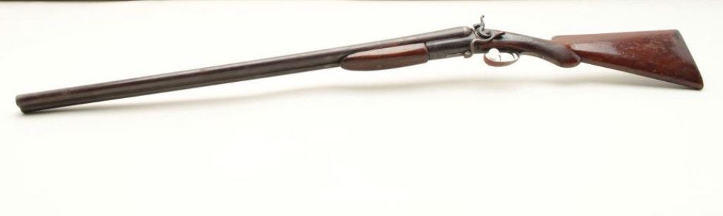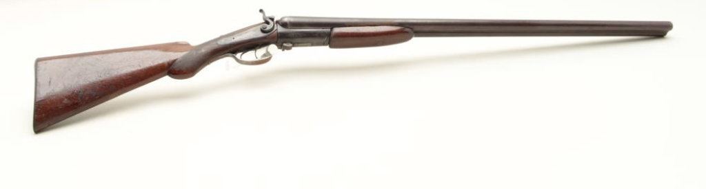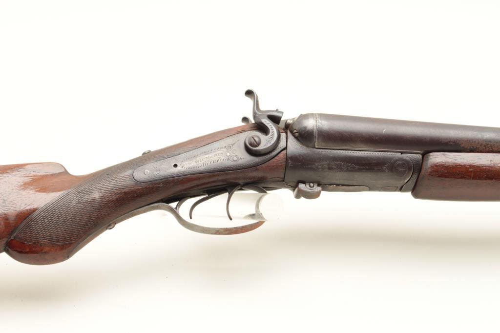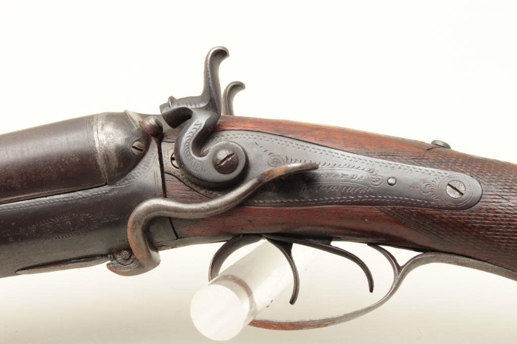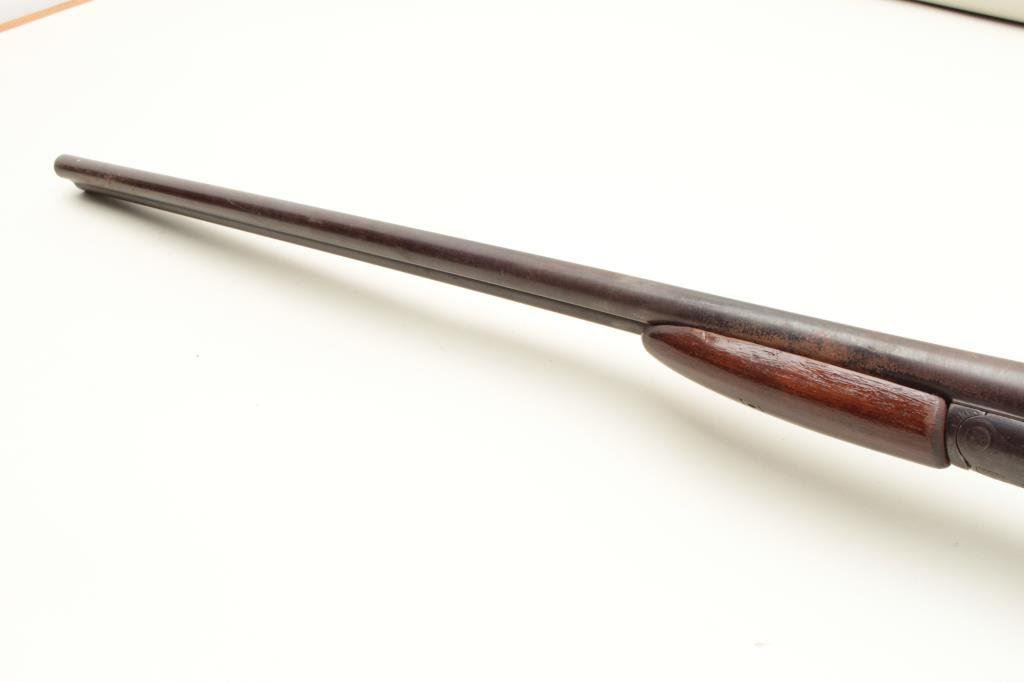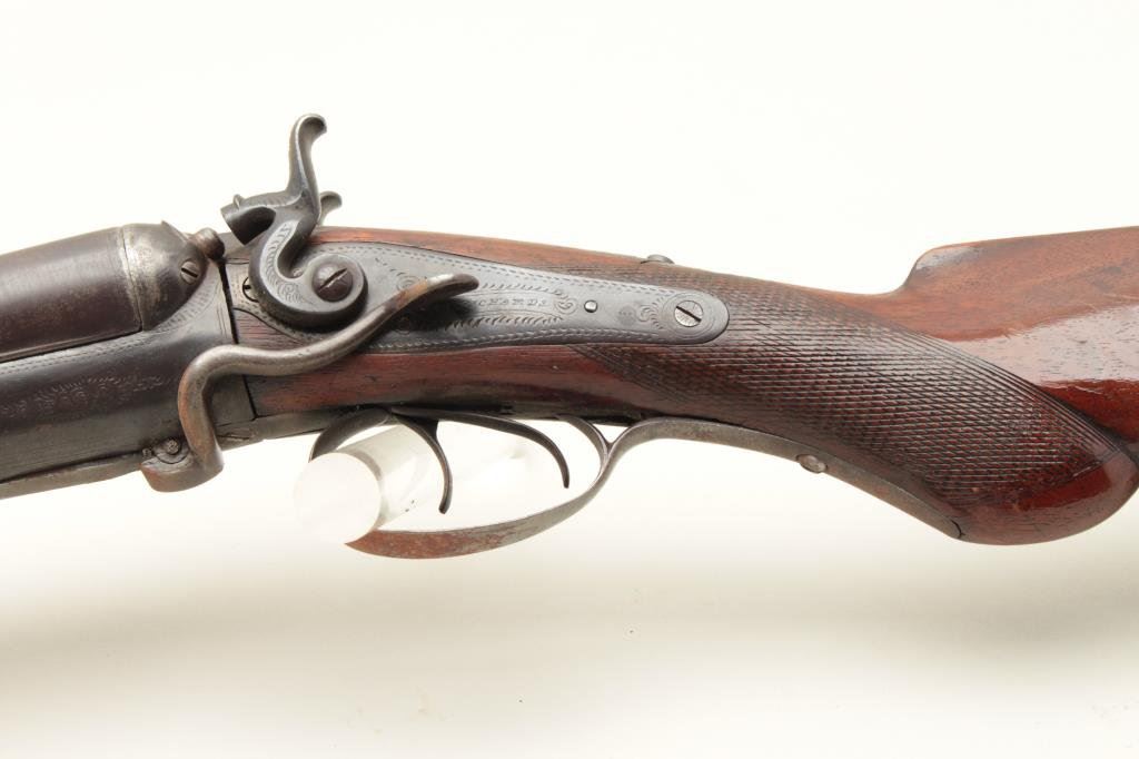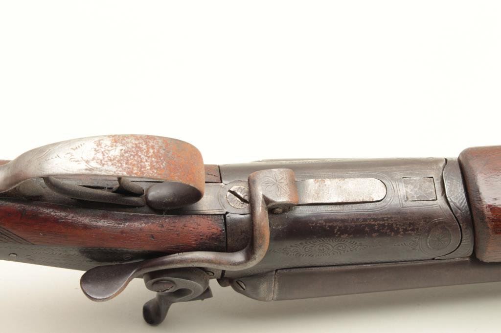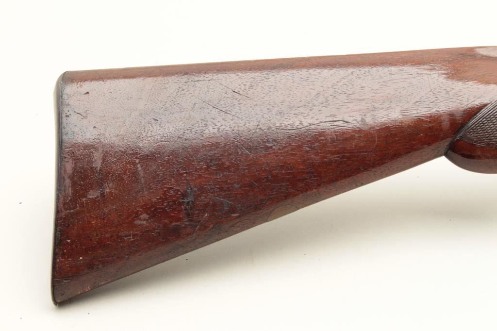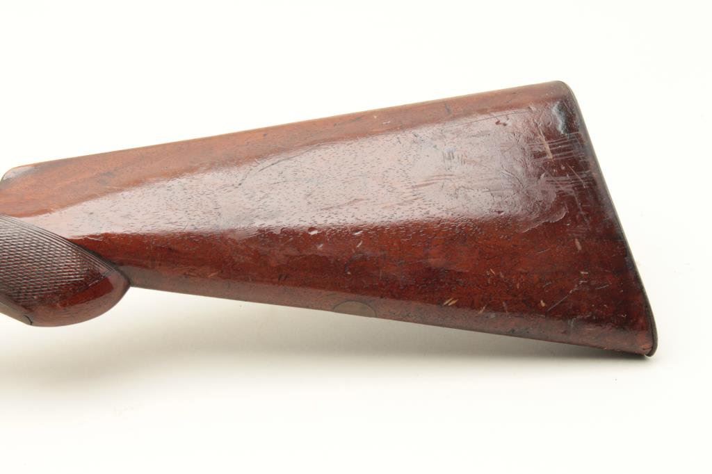 checkered wood stocks, working actions, dark patina to metal surfaces with scattered surface rust areas from storage, dark bore, re-finished wood stocks. (Antique). Est.: $100-$200.