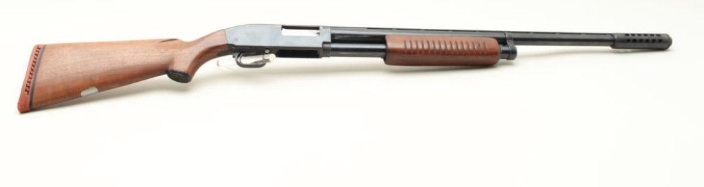 with JC Higgins patented compensator, 14" LOP, 46 1/4" overall. Shotgun is in very good plus condition with light surface scum and corrosion which should easily clean. Bore is bright, action is crisp. (C&R) Est. $125-250