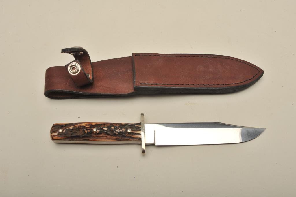 Russell with stag grip 10.5" with scabbard. North Woods Knife Co. Gladstone clip point belt size 9.5" overall excellent condition.