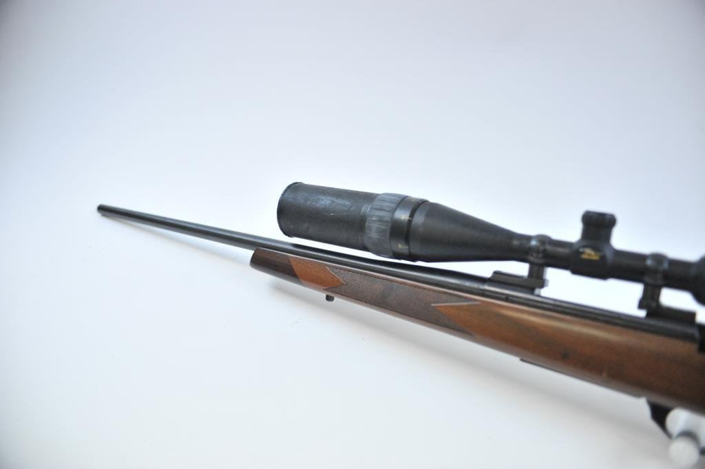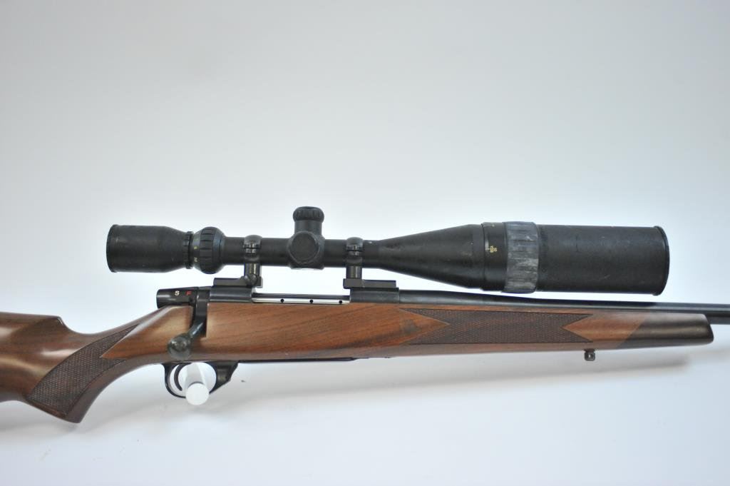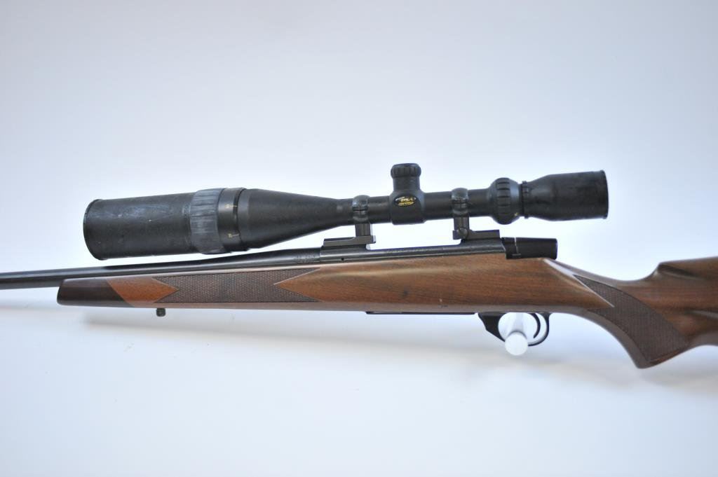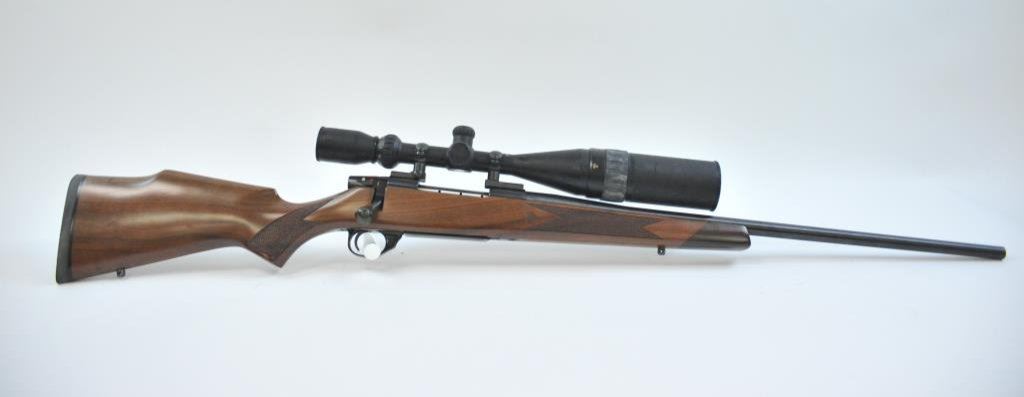 with B.S.A. Contender 4x16 power large scope. Fine to excellent condition overall. Some minor use. 98%-99% overall. Couple minor storage ding. Very little use. (Modern) Est.: $500-$1000