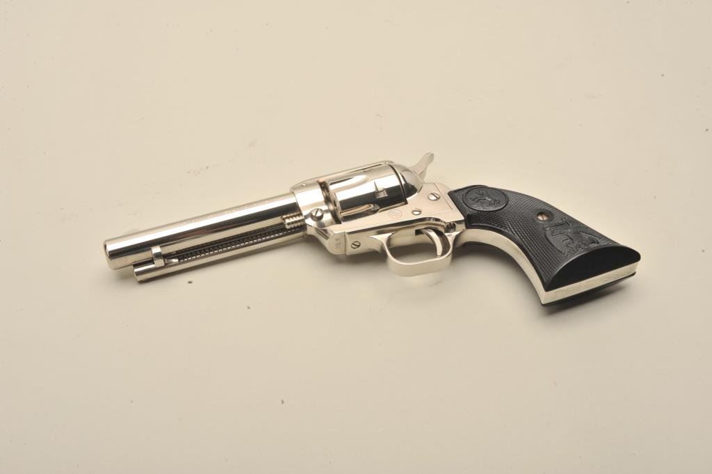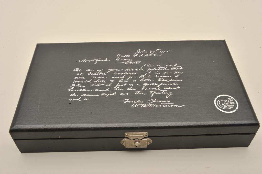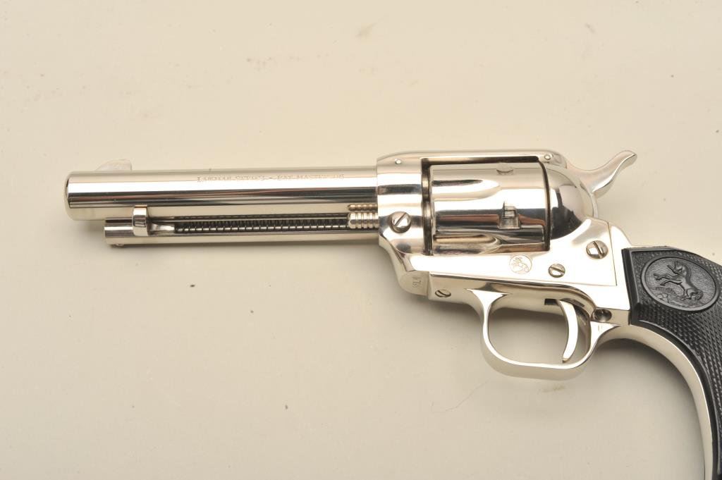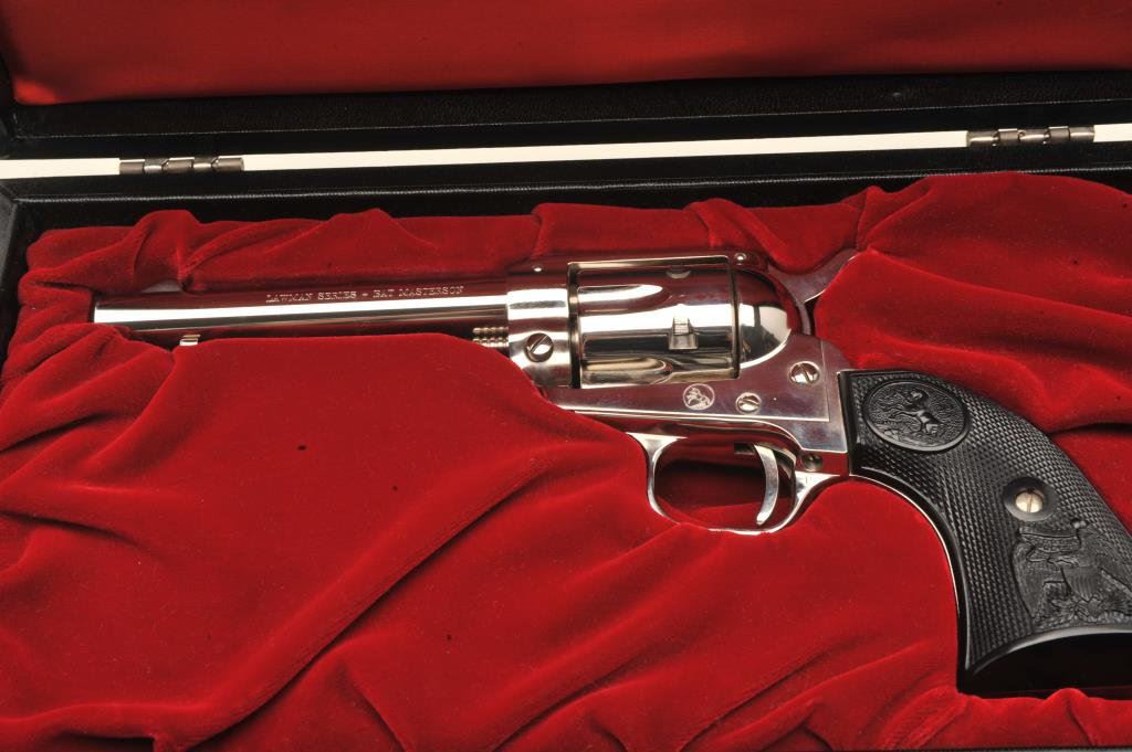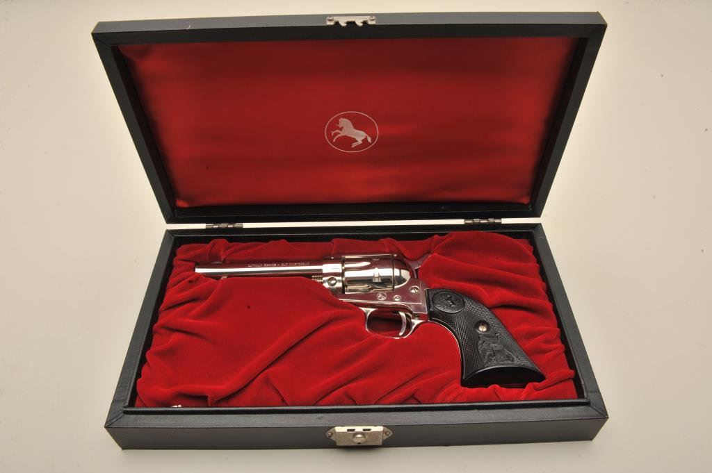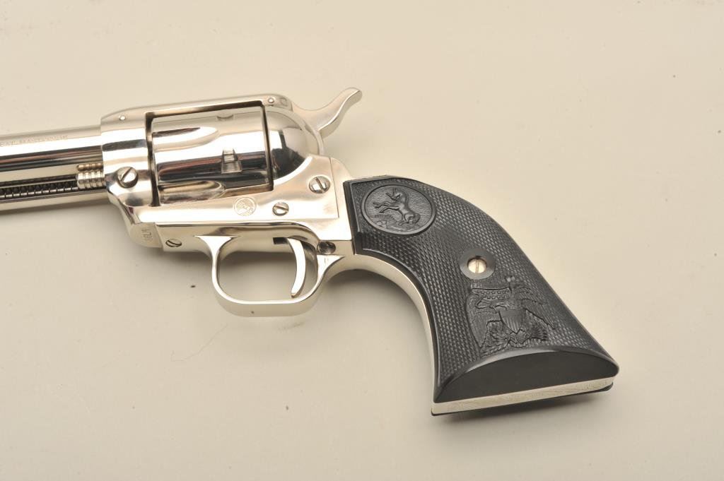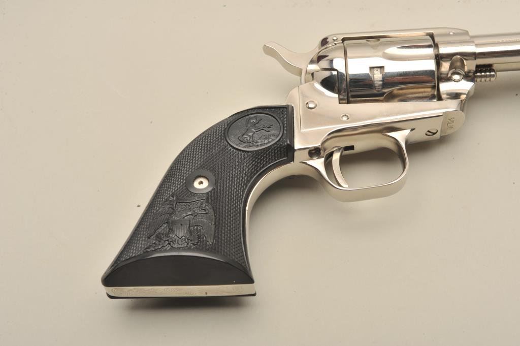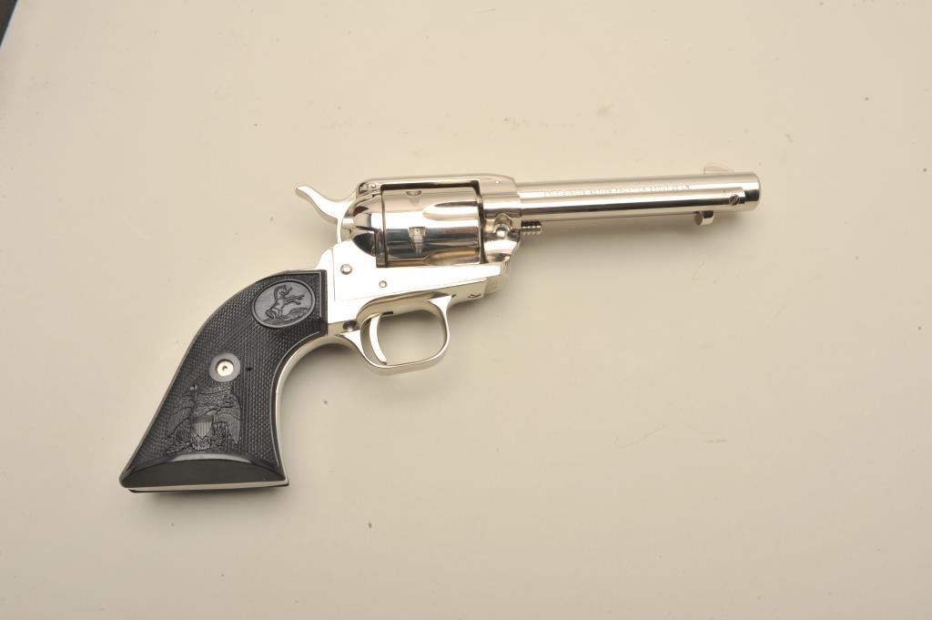 with a 4 ¾” barrel, S/N 86LM. Nickel plated with eagle grips in presentation case. No evidence of firing or use. 99% plus to new. Slight handling only. No index line on the cylinder. (C&R) Est.: $300-$600