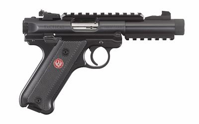 Ruger, Mark IV, Tactical, Semi-automatic, 22LR, 4.4" Threaded Barrel, Alloy Frame, Blue Finish, Checkered Synthetic Grips, 2-10Rd Magazines, Picatinny Rails on Top and Bottom of Barrel, Adjustable Rear Sight