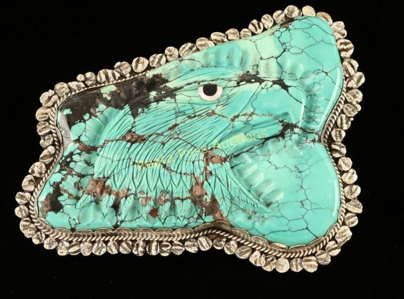 Lot 7 Large Turquoise & Sterling Eagle Belt Buckle
