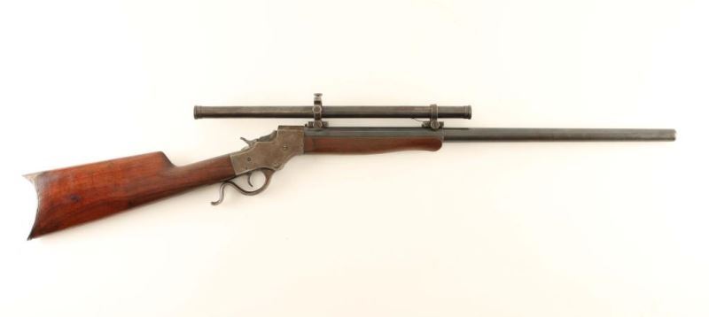 Vintage falling block single shot sporting rifle chambered in .22 Long Rifle, circa 1894-1933. Features a blued & case hardened finish, No. 0 weight 24" part octagon barrel with no provisions for sights,Factory fixed power scope with adjustable rings, smooth trigger, 's' shaped lever, drilled & tapped upper tang, smooth walnut schnabel forend and straight grip shoulder stock with crescent metal buttplate. Barrel retains most of it's original bluing with some areas of wear that have turned to brown patina. The case hardened receiver shows some good case colors with the majority of the metal surfaces displaying a light brown patina. Action is mechanically sound, bore is dull with semi-sharp rifling & a ring and wood stocks are good with a small chip to the toe on the left side, dings & finish loss. Condition is very good++. ***C&R Firearm*** ***Modern Firearm***