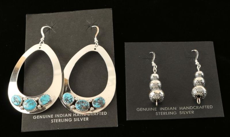 Lot 307a Lot of 2 Pairs Native American Sterling Earrings