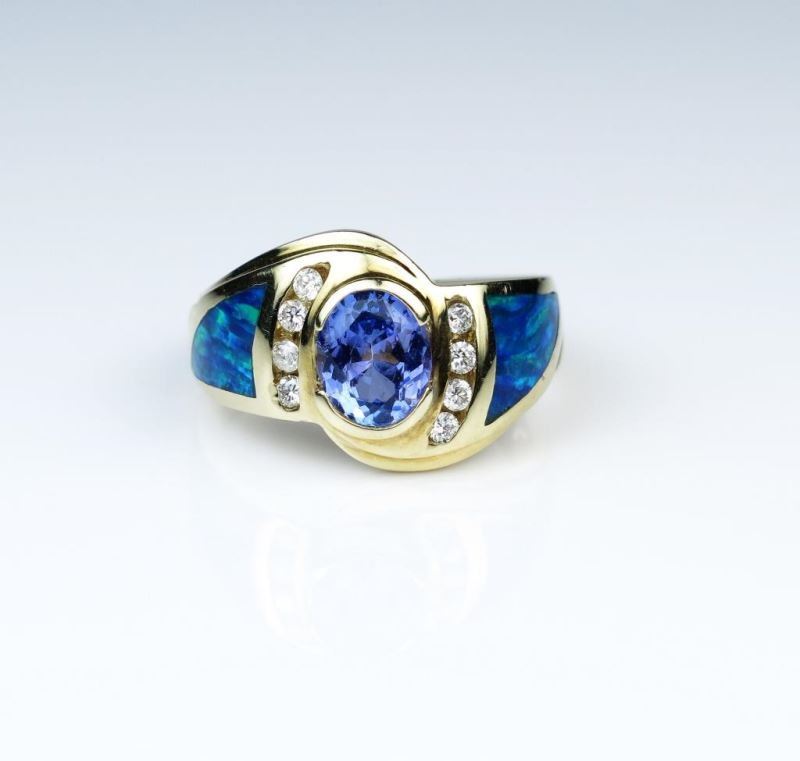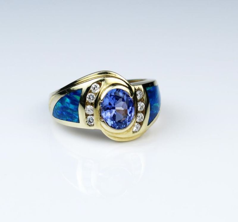 Lot 334 Vivid Tanzanite & Black Opal Ring