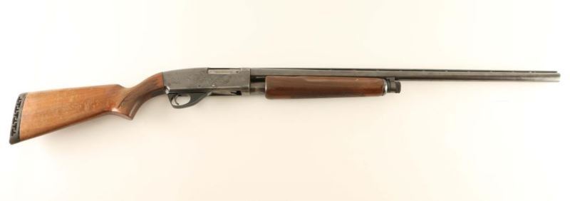 Older slide action shotgun manufactured 1958-1970. Blued finish, 28" bbl with added vent rib, 3" chamber, bead front sight, 1/2 length tube magazine, steel receiver with simple bird roll stamp engraving, sliding safety, press checkered wood slide handle and pistol grip shoulder stock with rubber recoil pad. Finish has a brown tint & is approximately 65% intact overall showing moderate handling wear and some scattered oxidation & surface rust. Action is smooth, bore is semi-bright with some debris and wood stocks are good with flaking finish & wear. Condition is near good. ***Modern Firearm***