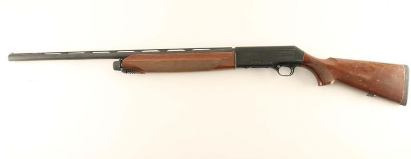 'Silver Mallard' Italian made semi-automatic shotgun, circa 1998. Matte black finish, 28" vent ribbed barrel w/ removable improved cylinder choke, push button safety, sling swivels, smooth trigger, alloy receiver, checkered wood forend and pistol grip shoulder stock with factory recoil pad & 14.5" LOP. Includes the original factory cardboard box. Approximately 88% finish intact overall showing wear and some light scattered surface rust on the barrel. Action is smooth, bore appears excellent but dirty and the wood stocks are good with numerous small blemishes. Condition is good. ***Modern Firearm***