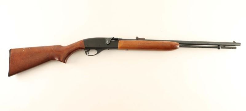 Remington 552 Speedmaster .22 S, L, or LR cal., 23” barrel, semi-auto, open sights, tubular magazine, shell deflector, plastic buttplate, and hardwood two piece pistol grip stock. Overall good condition, bore is bright, forend and stock show some small scratches and dings, receiver, barrel, and tubular magazine retain most of their original finish. *Modern Firearm*