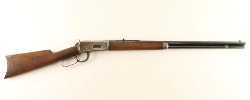 Circa 1911. Blued finish, 26" octagon bbl, full length tube magazine, blade front sight with set screw, adjustable semi-buckhorn rear sight, smooth walnut stocks and crescent metal buttplate. The barrel & magazine tube retain approximately 60% of their blued finish showing edge wear, handling wear and scattered light surface rust. The receiver is in-the-white with a browning patina and some surface(primarily along the stock line). Markings are good, action is sound, bores is excellent and wood stocks are very good with a single small crack extending from the upper tang. Condition is good+. ***C&R Firearm***