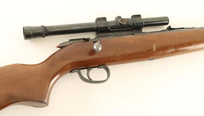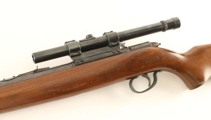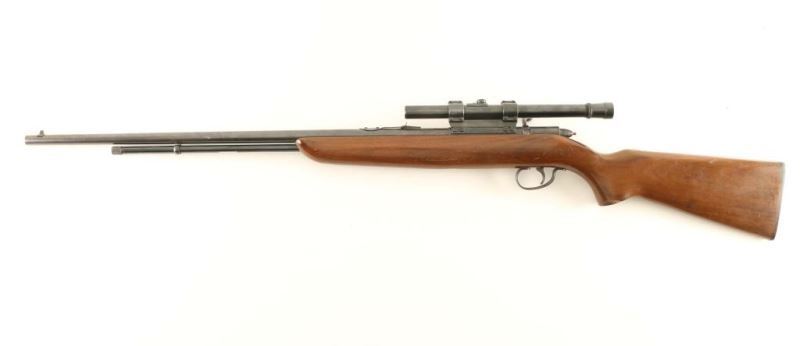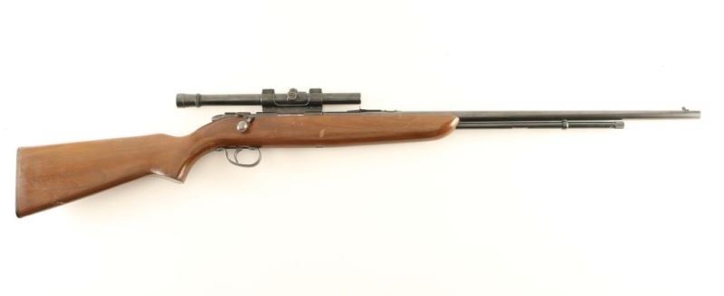 Remington model 512 Sportmaster 25” barrel, .22 short, long, or long rifle. The rifle features a one-piece hardwood stock, and a blued metal finish. An unusual feature of this rifle is that it uses a tubular magazine in conjunction with a bolt action. Includes a Weaver B4 4X ¾” scope in a receiver side mount,; optics are clear. Bolt tail is color case hardened; receiver, barrel, and tubular magazine retain most of their original finish. Overall condition is good, bore is bright. *Modern Firearm*