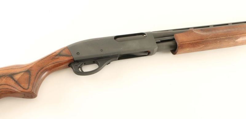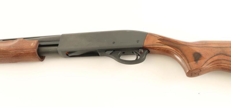 Slide action repeating shotgun chambered for 2 3/4" & 3" 20 gauge shells. Features a parkerized finish, 21" vent rib barrel with removable cylinder choke, bead front sight, 1/2 length tube magazine, smooth trigger beveled edges, push button safety, press checkered laminated wood slide handle and pistol grip shoulder stock with factory recoil pad & 12 3/4" LOP. Shotgun exhibits approximately 94% of it's original finish showing some bright scratches & scuffs. Action is smooth, bore is excellent and wood stocks are near fine with light wear on the forend. Condition is very good+++. ***Modern Firearm***