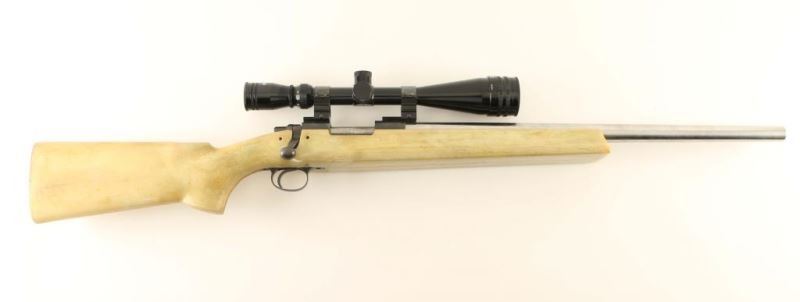 Customized bolt-action single shot bench rest rifle chambered in 6mm Bench Rest .263 Neck Diameter. Blued receiver, Sinclair Inc. 22.5" heavy stainless barrel, Tasco 6-25x 44mm scope, jeweled bolt, aftermarket trigger, and bedded lightweight stock. Rifle shows light to moderate wear with some scattered spots of light surface rust. Action performs well, optics are clear, bore is excellent and stock is very good. Condition is good++. ***Modern Firearm***