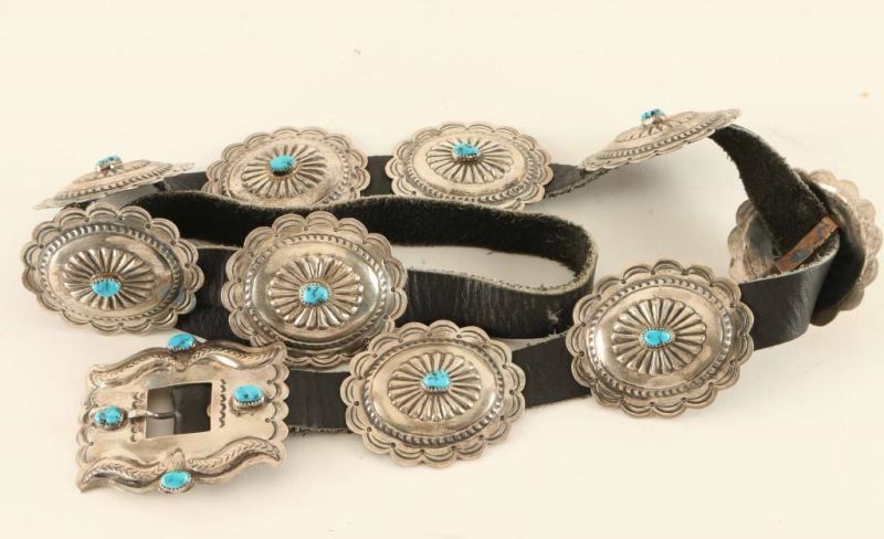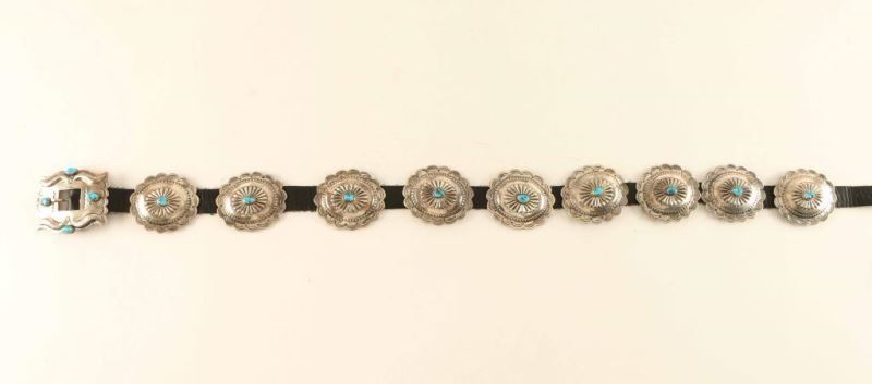 Lot 800 Traditional Sterling & Turquoise Concho Belt