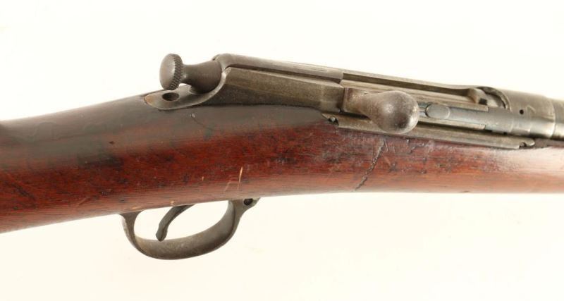U.S. Springfield Chaffee-Reese 1882. Bolt Action Repeating Rifle. Barrel length: 22”. This is an example of one of only 753 manufactured by Springfield Armory in 1884. Invented in 1879 and selected by the Magazine Rifle Board of 1882 for trials, the rifle and its unique double-ratchet magazine, make this one of the rarest rifles manufactured by Springfield Armory. The rifle appears to have been modified from its original 27 7/8 inch barrel length by modifying the stock and shortening the barrel to 22” carbine length. Missing ~ 1” of stock which has been cutoff. Sights and magazine assembly are missing. Parts gun *Antique Firearm*