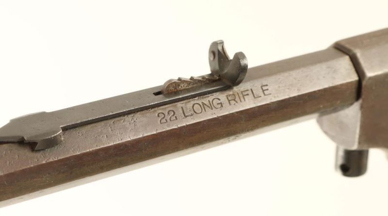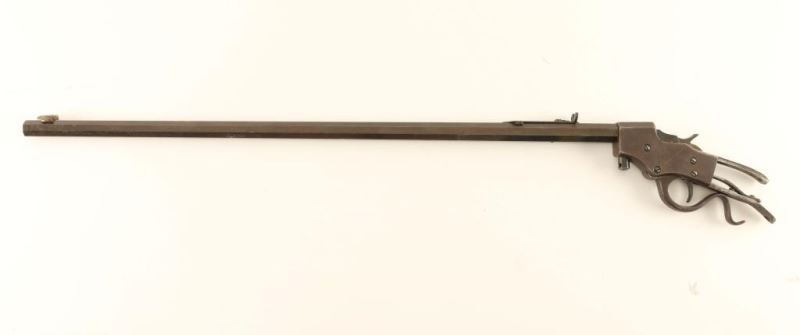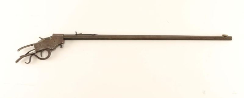 Barreled Action. Blued finish, 24" octagon bbl, German silver blade front sight, semi-buckhorn adjustable rear sight, steel receiver, smooth trigger, knurled hammer spur and 's' shaped lever. Shows some original bluing on the underside of the barrel toward the receiver with the balance of the metal surfaces turned to brown patina. The hammer does not lock into the cocked position and bore is fair. ***Modern Firearm***