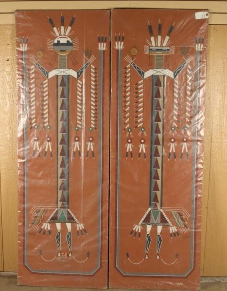 Both by Begay. One entitled "Female Yei" and "Male Yei". Unframed, both measure 72" x 24".