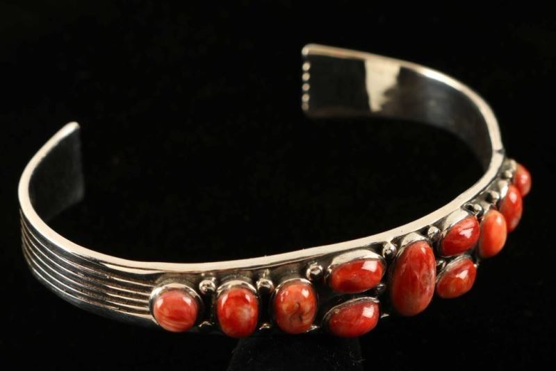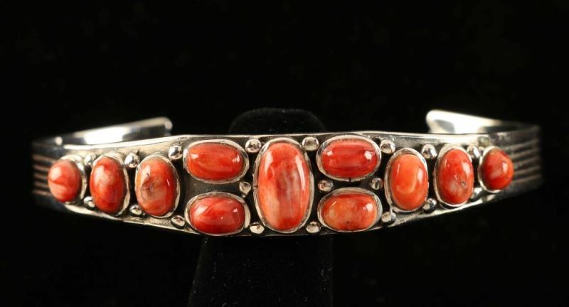 Lot 880 Native American Spiny Oyster & Sterling Bracelet