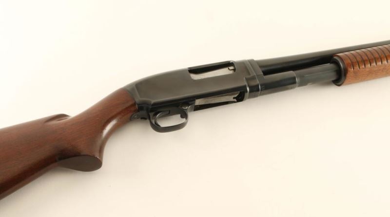 Winchester model 12 20 Ga 28” barrel, takedown model, manufactured 1946. Overall very-good condition, most of the original finish remains on the receiver and frame. Plain pistol grip stock, solid steel frame. Known as the "perfect repeater" when introduced in 1912, the Winchester model 12 was produced in numbers close to two million over a 51 year period. *Modern Firearm*