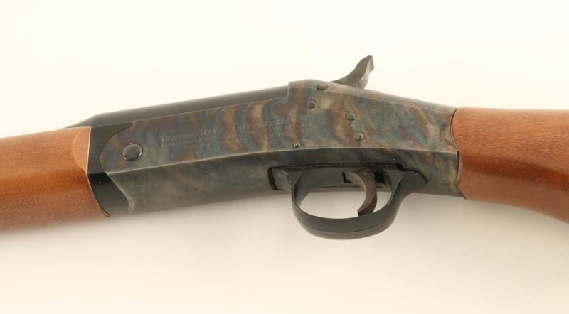 H&R topper .410 3” chamber 24” barrel colored case hardened receiver, brass bead front sight, fixed choke barrel, break open side lever release action, ejector, hardwood stock with full pistol grip and forearm. Overall very-good condition. *Modern Firearm*