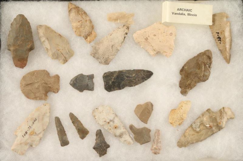 Various sizes, Archaic from Vandalia, Illinois per consignor in Riker mount.