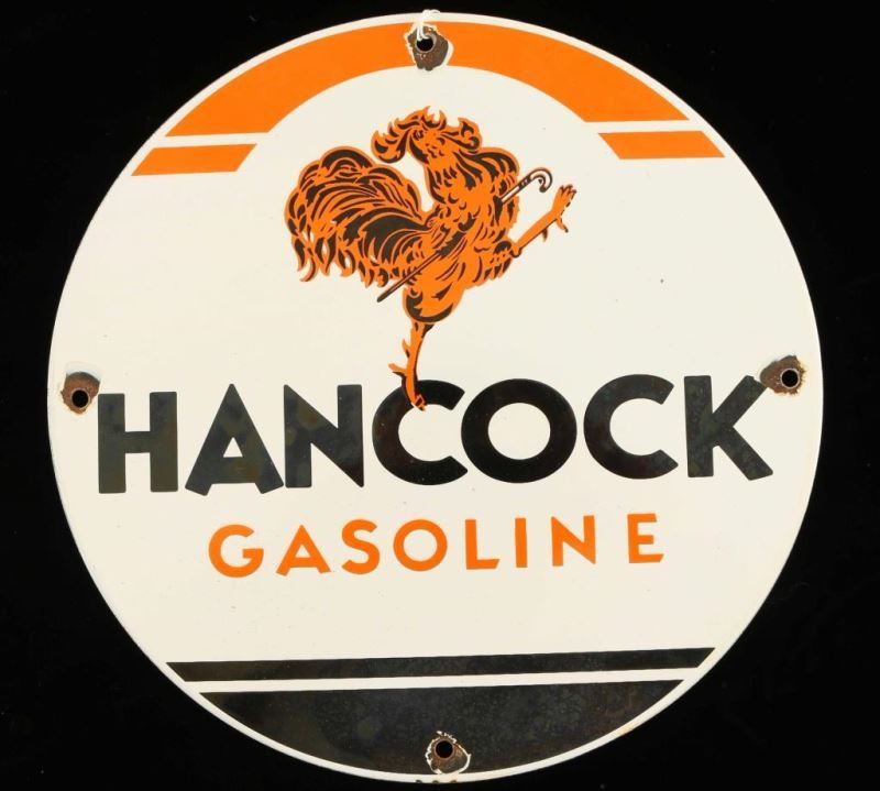 Lot 986 Vintage Porcelain Hancock Gasoline Pump Sign