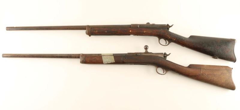 Firearm one: 24” Barrel, it appears to be a short magazine sporting rifle stock cracked in several places; missing sights. Firearm two: 23” barrel, stock intact missing upper stock screw, buttplate, magazine, and sights. The Remington-Keene is an early bolt-action rifle with a tube magazine. *Antique Firearm*
