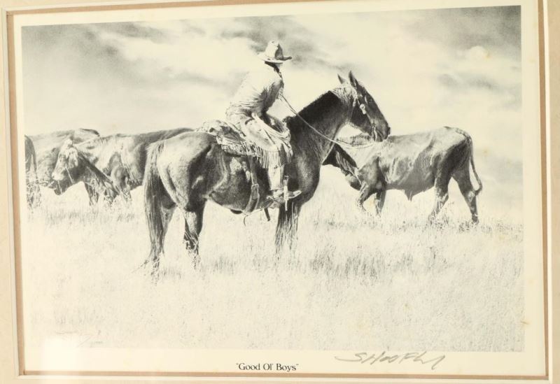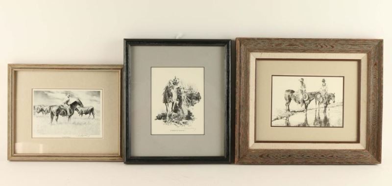 "A Friend to Lean On" 5"x6", "Good Old Boys" 6 1/2"x4 1/2" and "The Cooler" 6 1/2"x4 1/2". All three are hand signed in pencil in wood frames.