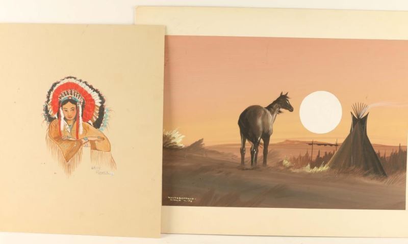 Indian subjects by White Buffalo, Topeh, White Flower, and Swift. Various sizes. Photos from Oklahoma homestead.