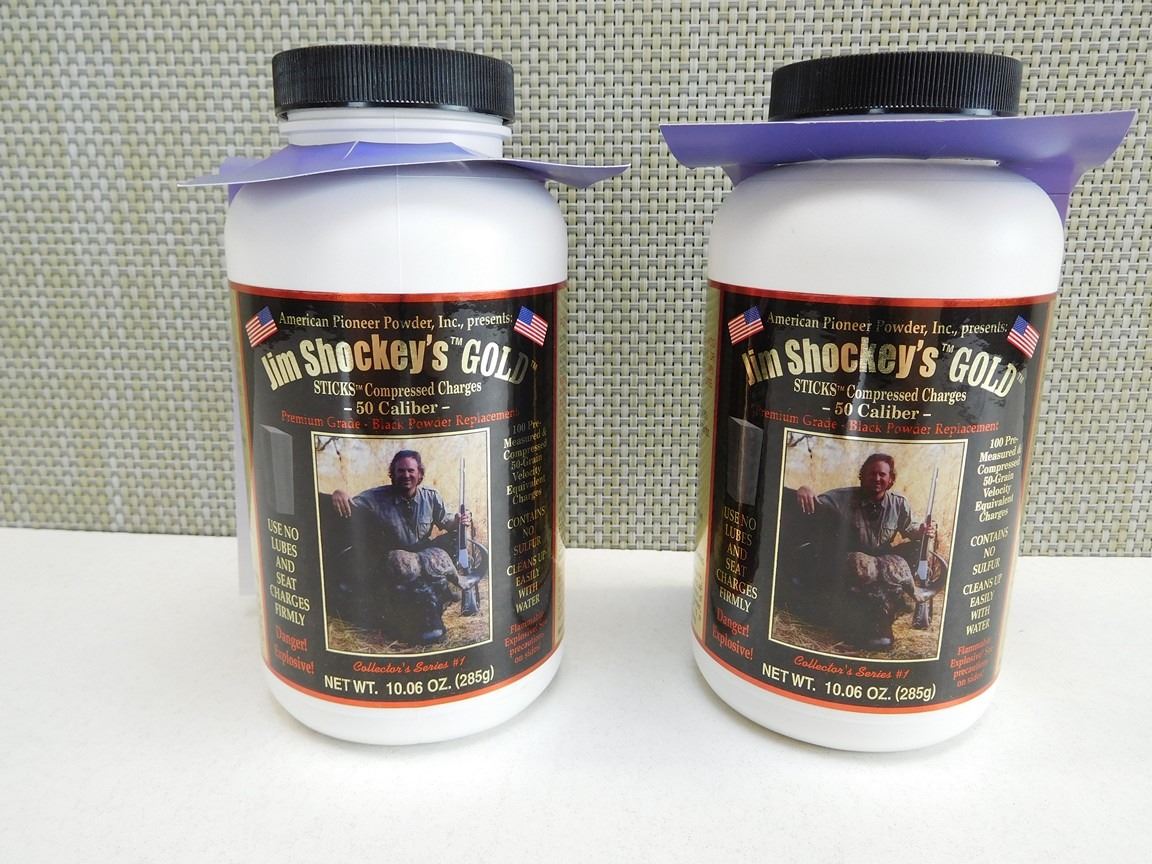 (2) BOTTLES: 50 CAL. STICKS, WITH 100 PREMEASURED COMPRESSED 50 GRAIN EQUIVALENT CHARGES, NEW
