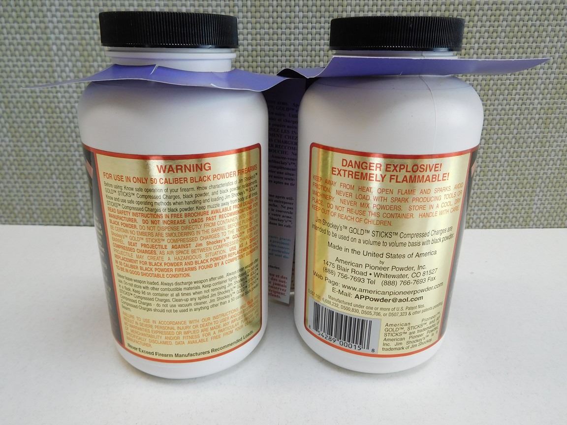 (2) BOTTLES: 50 CAL. STICKS, WITH 100 PREMEASURED COMPRESSED 50 GRAIN EQUIVALENT CHARGES, NEW