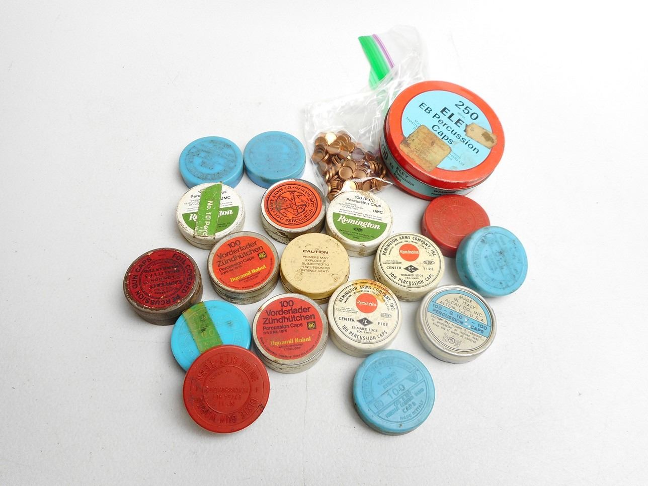 Lot 2920 ASSORTED LOT OF PRECUSSION CAPS, SOME ANTIQUE AND UNABLE TO OPEN