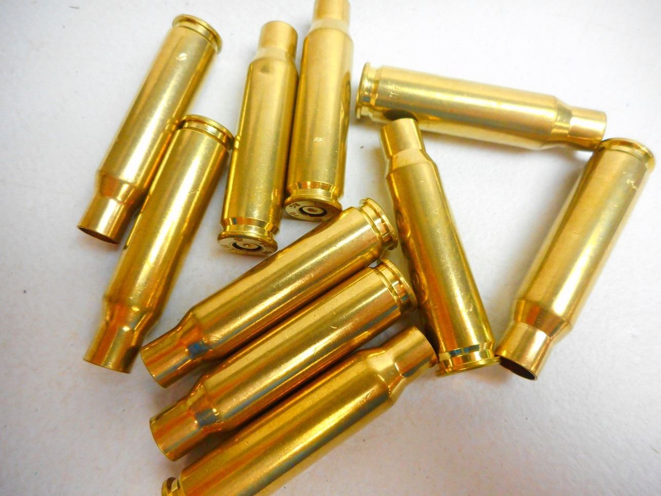 3.6 LBS TOTAL INCLUDES 10 CASINGS OF 7.62 X 51MM NATO L42A1, 7 250 CASINGS OF ONCE FIRED 9MM LUGER