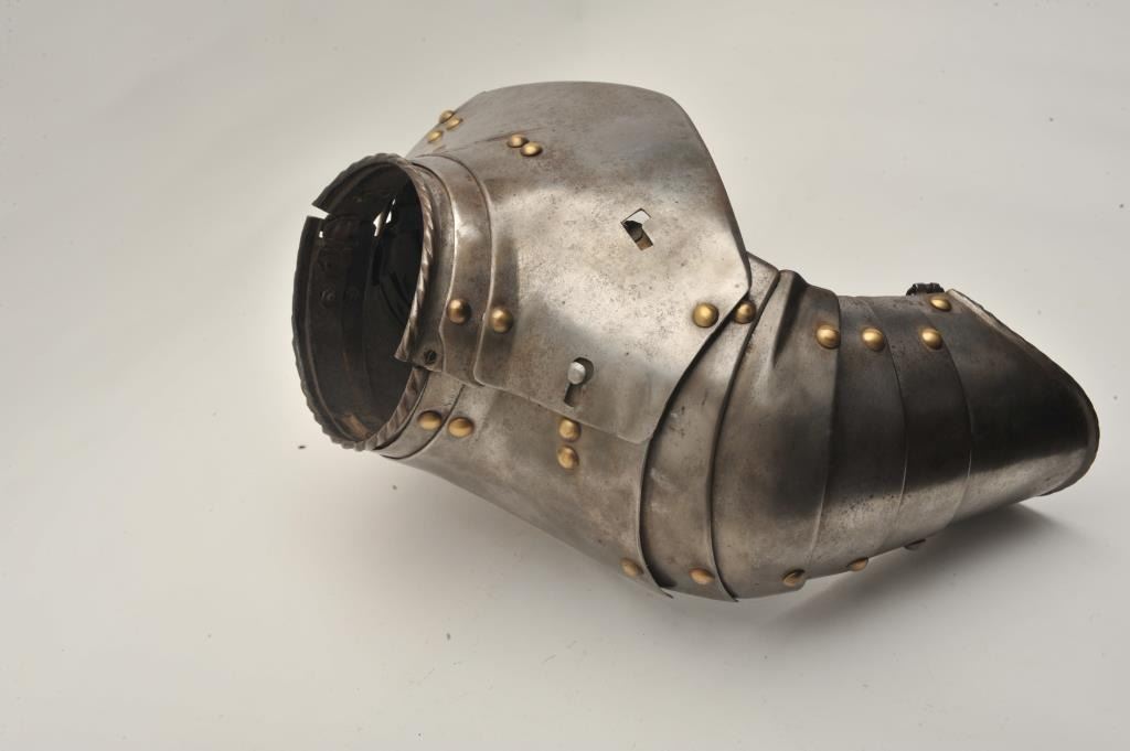 18AT-12 GORGET "ANIMME"Authentic 16th to 17th century armorer made animme gorget and shoulders. Brass rosettes and absolutely genuine. Great to display with authentic helmet. Good condition. Est.: $1750-$3500Authentic 16th to 17th century armorer made animme gorget and shoulders. Brass rosettes and absolutely genuine. Great to display with authentic helmet. Good condition. Est.: $1750-$3500