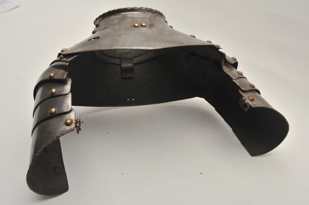 Lot 84 18AT-12 GORGET "ANIMME"Authentic 16th to 17th century armorer made animme gorget and shoulders. Bra