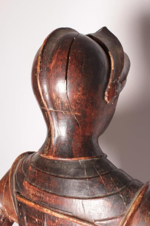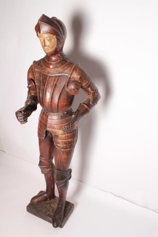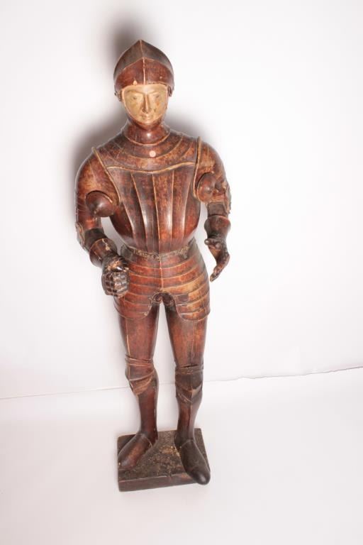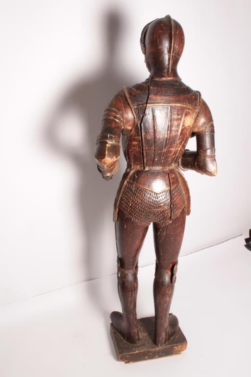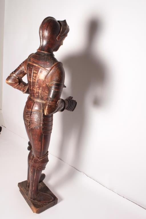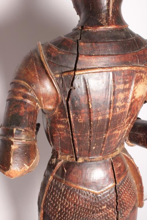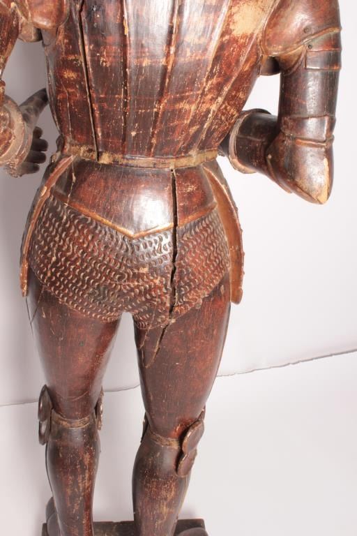 Lot 109 EVE-2 CARVED & PAINTED KNIGHT18th Century carved and painted jesso figure of life size (68” tall) k