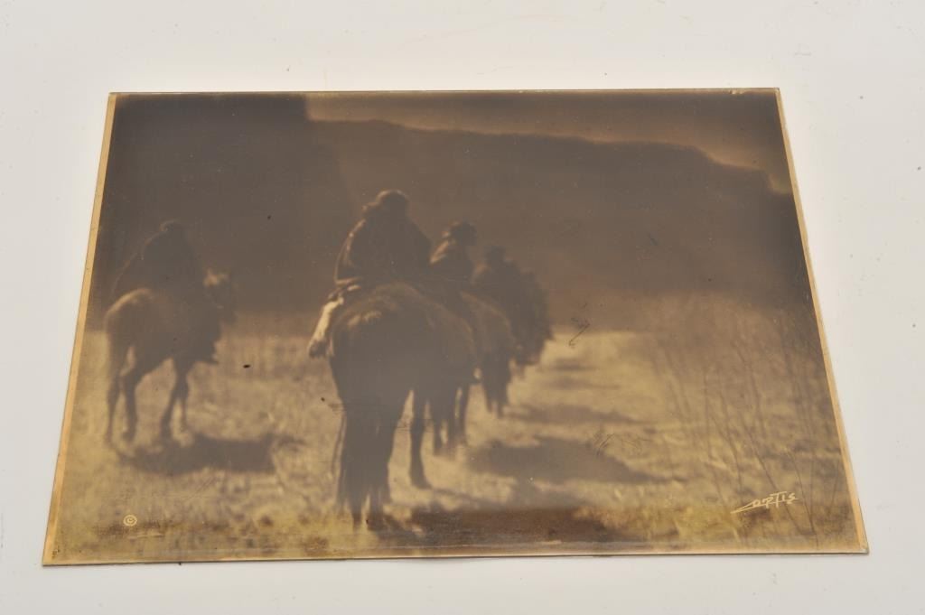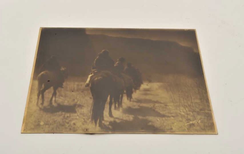 EVE-41 GOLD TONE PHOTOGRAPHOriginal gold tone photograph on glass signed and copyrighted by Curtis. Shows Apaches at night and titled “Vanishing Race”. The estate of Eric Vaule and gifted to him with card inscribed from Helen Foreman Spencer, Museumof Art, Lawrence, Kansas. Measures 8” x 10”. Est.: $2500-$5000Original gold tone photograph on glass signed and copyrighted by Curtis. Shows Apaches at night and titled “Vanishing Race”. The estate of Eric Vaule and gifted to him with card inscribed from Helen Foreman Spencer, Museumof Art, Lawrence, Kansas. Measures 8” x 10”. Est.: $2500-$5000