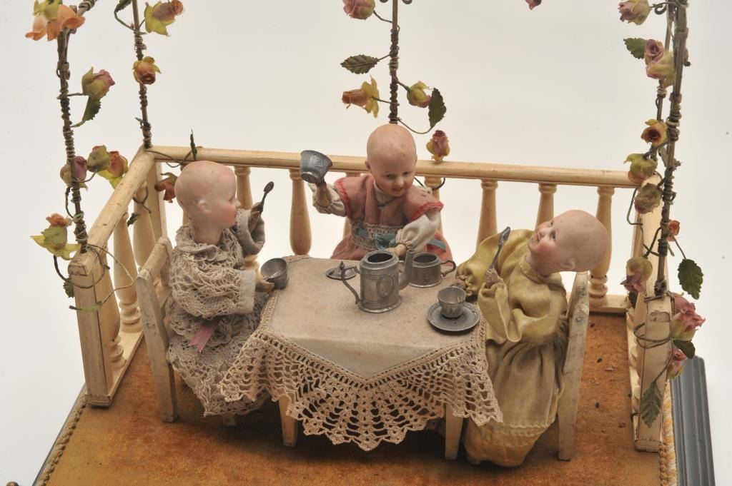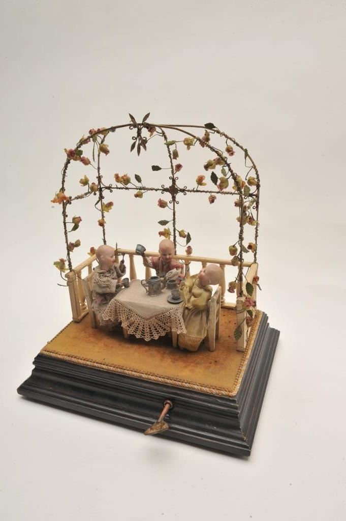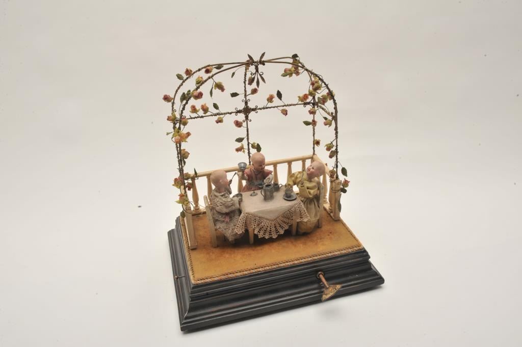 EVE-60 AUTOMOTONRare 3 figure automaton of tea party. Figures measure 5 ½” tall and measures overall 16” tall and 15” width. Good condition needing cleaning, wigs for figures and minor T.L.C. works well. Probably French circa Mid-19thcentury. The estate of Eric Vaule. Est.: $5,000-$10,000Rare 3 figure automaton of tea party. Figures measure 5 ½” tall and measures overall 16” tall and 15” width. Good condition needing cleaning, wigs for figures and minor T.L.C. works well. Probably French circa Mid-19thcentury. The estate of Eric Vaule. Est.: $5,000-$10,000