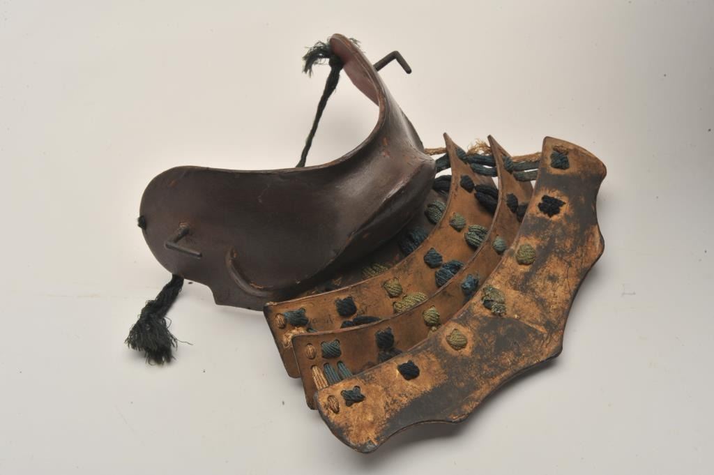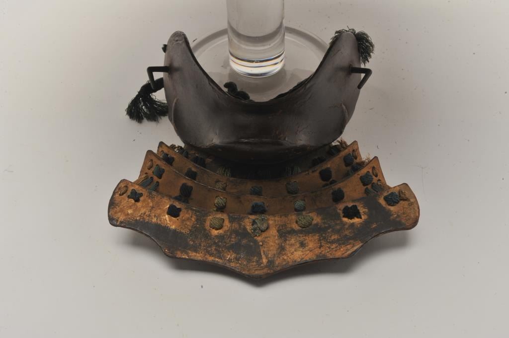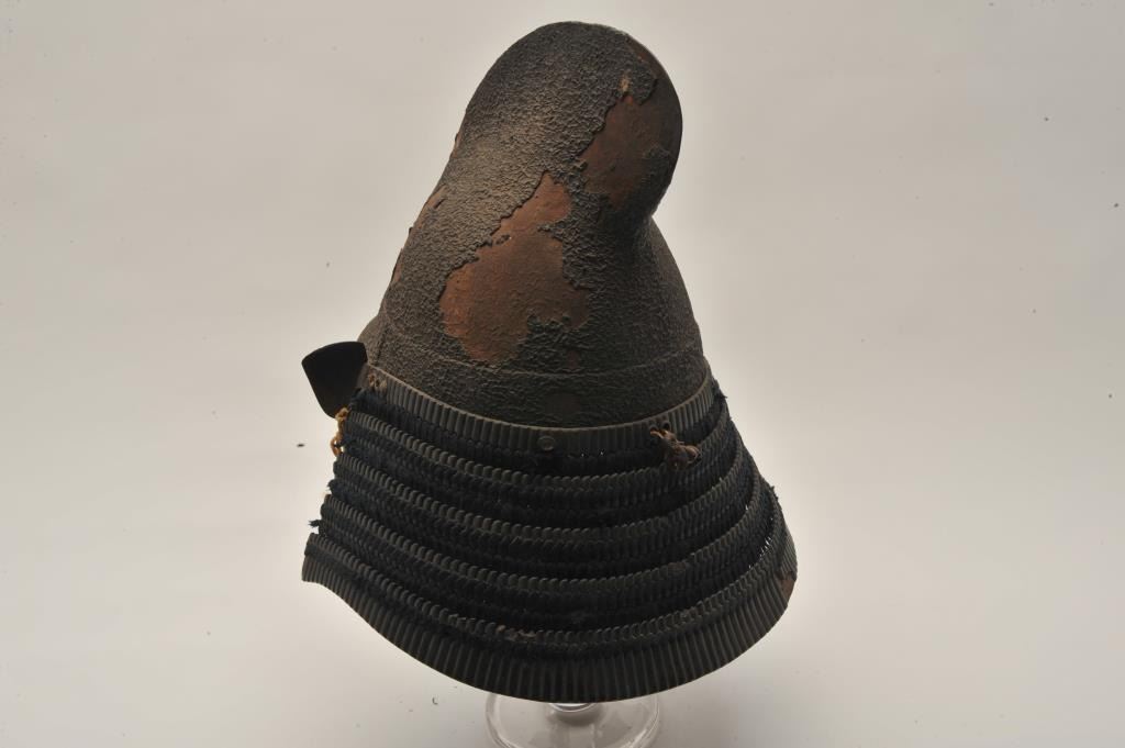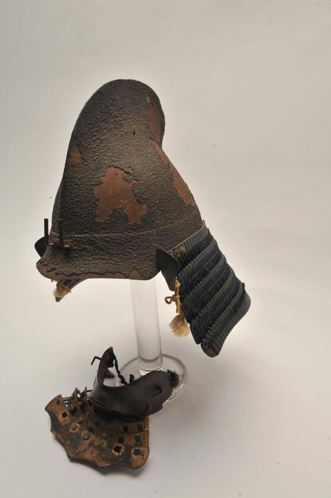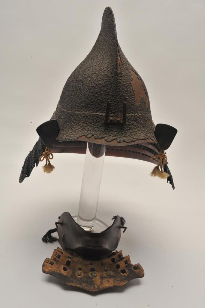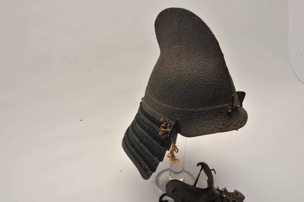 EVE-71 JAPANESE HELMETEarly Japanese forged steel helmet with lacquer over coat in “Shark fin” style with chin piece. Fair condition. Untouched patina. 250-350 years old. The estate of Eric Vaule. Est.: $4,000-$8,000Early Japanese forged steel helmet with lacquer over coat in “Shark fin” style with chin piece. Fair condition. Untouched patina. 250-350 years old. The estate of Eric Vaule. Est.: $4,000-$8,000