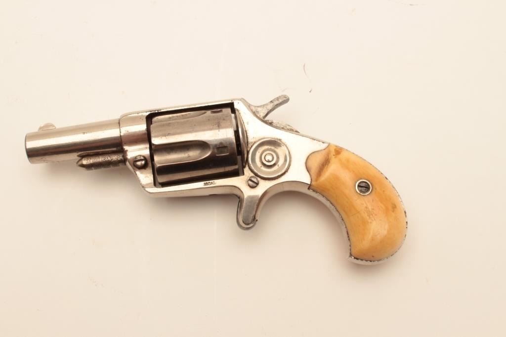 Lot 140a 18CF-3 COLT NEW LINEColt New Line .38 caliber revolver nickel plated with authentic period ivory gr