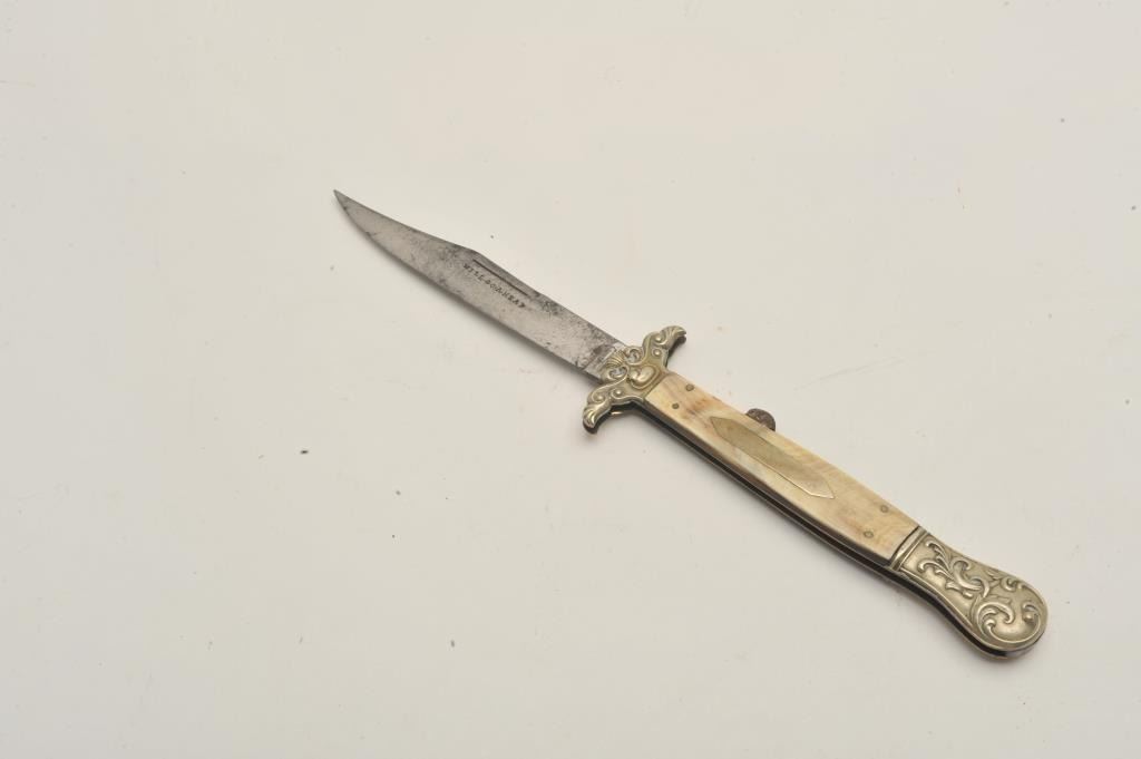Lot 140b 18CF-10 FOLDINGEnglish Mid-19th century folding lock blade knife marked “Elward, Barnes, & Co” with