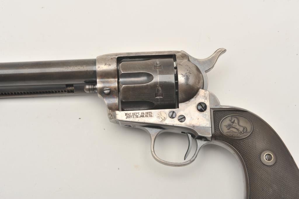 Lot 170 18CMT-4 COLT SAA #177763Colt SAA revolver, .38 WCF caliber, 7 ½” barrel, blue and case hardened fin