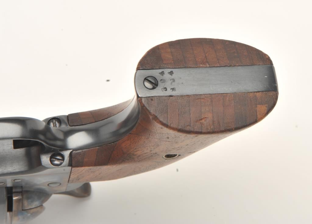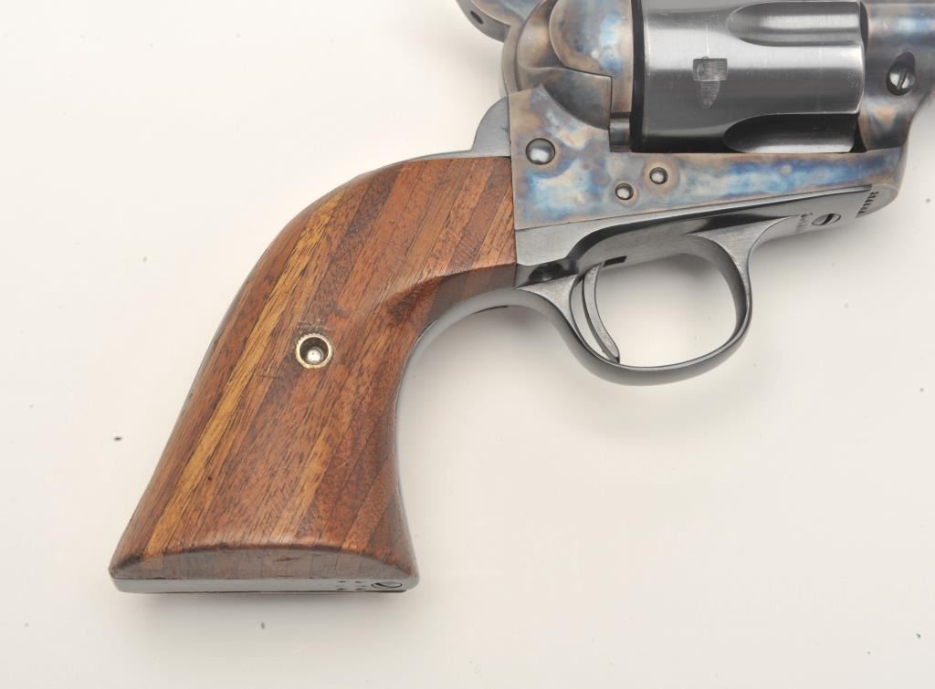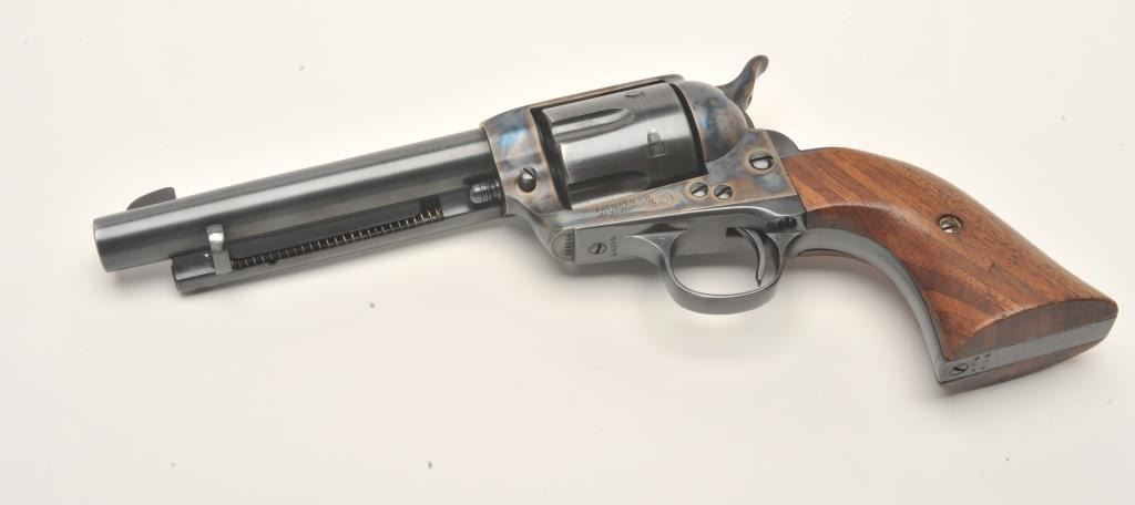 17FS-55 COLT S.A. #304804Colt SAA revolver, scarce .38 Colt caliber, 5.5” barrel, re-finished and re-gripped with smooth custom wood grips, S/N 304804, in overall very good condition as re-blued and re-case hardened, very good bore, crispaction, sharp markings and fine custom grips; accompanied by a Colt factory letter confirming caliber, barrel length with stocks “Not Listed”; shipped to Lord & Poll, address not available on April 25, 1908, onegun in shipment. (C&R/No PPT). Est.: $1,600-$3,200.Colt SAA revolver, scarce .38 Colt caliber, 5.5” barrel, re-finished and re-gripped with smooth custom wood grips, S/N 304804, in overall very good condition as re-blued and re-case hardened, very good bore, crispaction, sharp markings and fine custom grips; accompanied by a Colt factory letter confirming caliber, barrel length with stocks “Not Listed”; shipped to Lord & Poll, address not available on April 25, 1908, onegun in shipment. (C&R/No PPT). Est.: $1,600-$3,200.