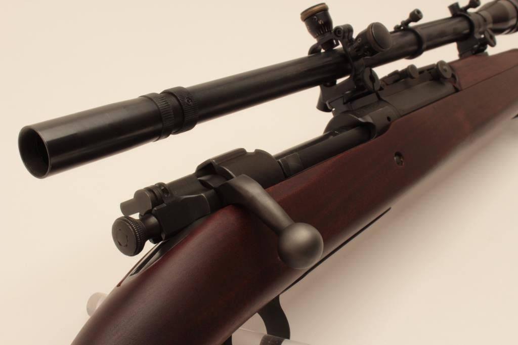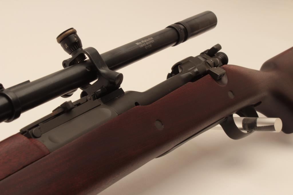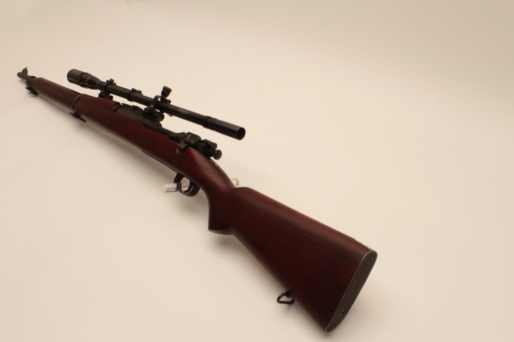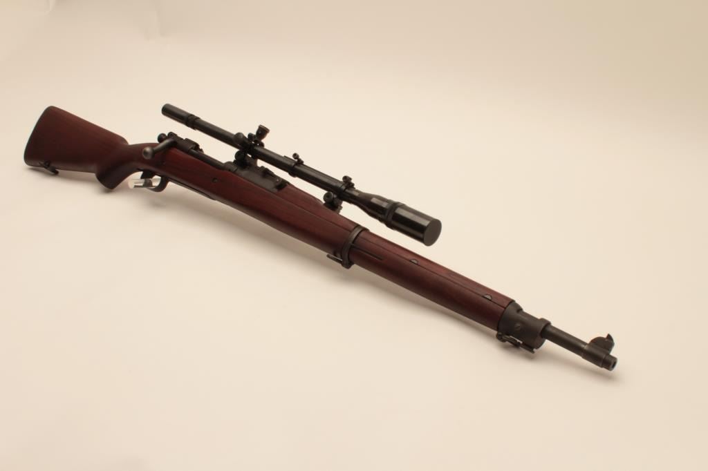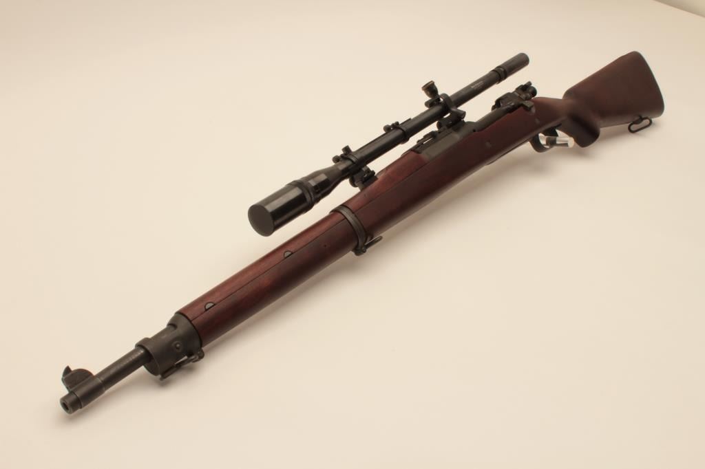 18AD-5 SPRINGFIELD 1903 #1394382U.S. Springfield Armory Model 1903 bolt action rifle, .30 caliber, Serial #1394382. The rifle is in fine overall condition with a 24” RIA barrel dated 4-22 with the flaming bomb insignia. The barrel features a rampedblade front and military tangent style rear sights. The rifle has been re-parkerized and retains nearly all of its military finish. The smooth wood stock is in very good condition with sling swivels and only lightstorage marks noted. The butt stock ends with a checkered steel butt plate with trap. The rifle is topped with CMP blocks and a Wm. Malcolm USMC-SNIPER scope. The bore is very good, the action is crisp and themarkings are sharp on this desirable Springfield. Est.: $750-$1,500. (C+R).U.S. Springfield Armory Model 1903 bolt action rifle, .30 caliber, Serial #1394382. The rifle is in fine overall condition with a 24” RIA barrel dated 4-22 with the flaming bomb insignia. The barrel features a rampedblade front and military tangent style rear sights. The rifle has been re-parkerized and retains nearly all of its military finish. The smooth wood stock is in very good condition with sling swivels and only lightstorage marks noted. The butt stock ends with a checkered steel butt plate with trap. The rifle is topped with CMP blocks and a Wm. Malcolm USMC-SNIPER scope. The bore is very good, the action is crisp and themarkings are sharp on this desirable Springfield. Est.: $750-$1,500. (C+R).