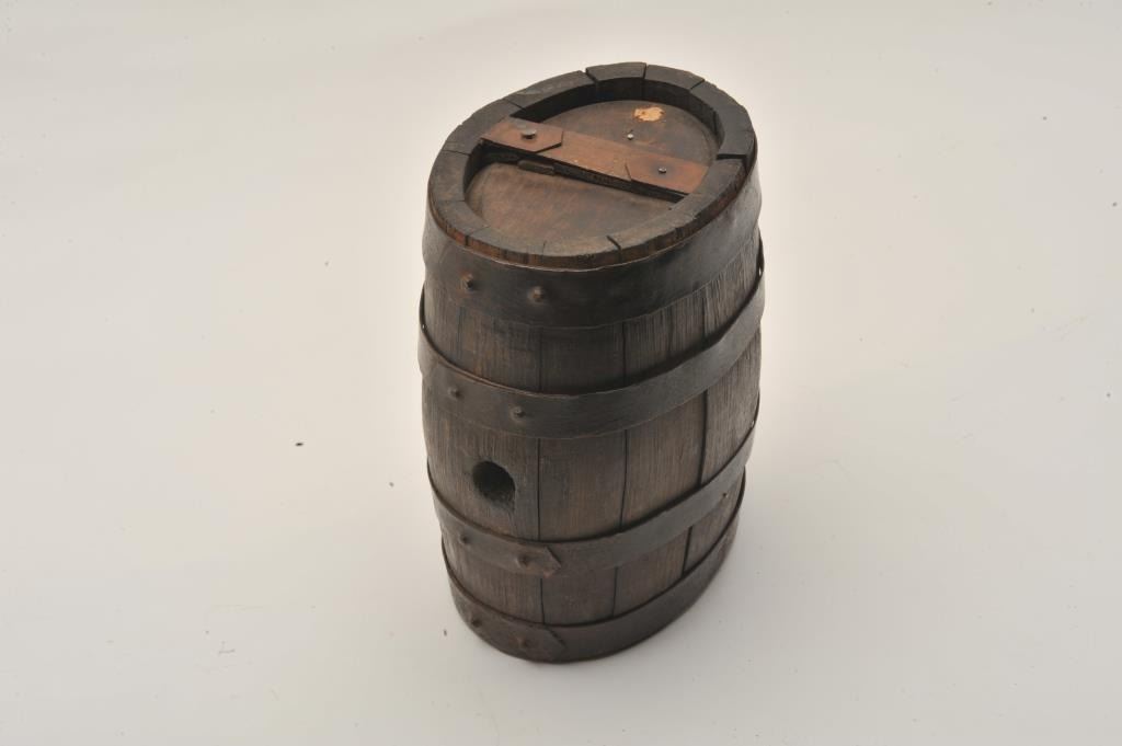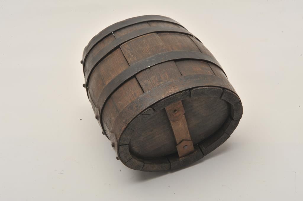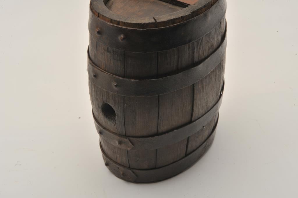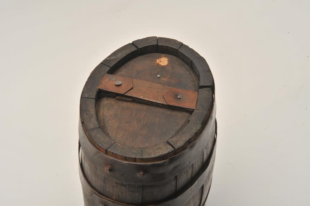 18AL-6 BBL CANTEENAmerican barrel canteen from revolution to Mid-19th century. Measures 7 ¼” x 6 ¼”. Good condition. Est.: $300-$600American barrel canteen from revolution to Mid-19th century. Measures 7 ¼” x 6 ¼”. Good condition. Est.: $300-$600