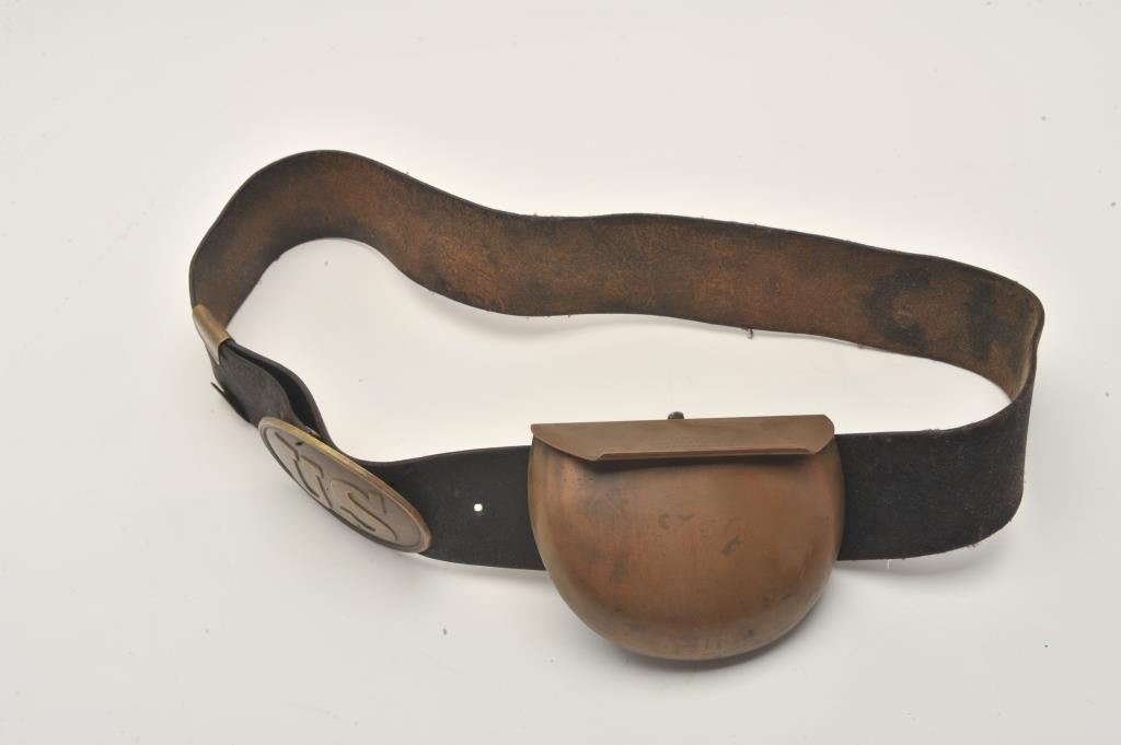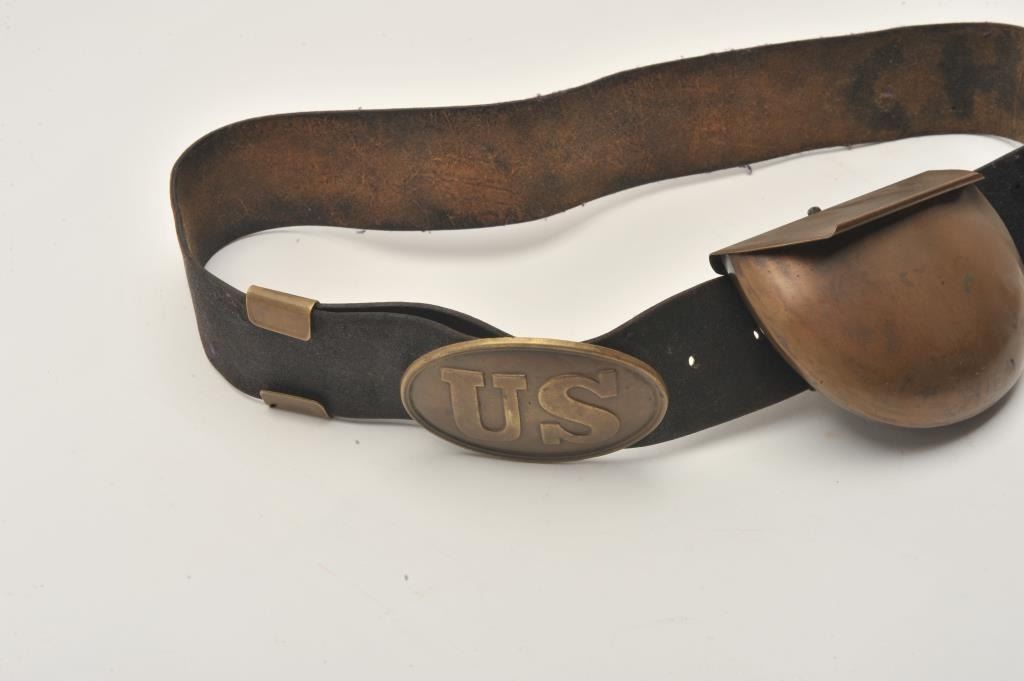 18AL-24 CIVIL WAR ETA BRASS CART.Civil War era brass cartridge box by Kittredge & Co. of Ohio, on belt with US buckle. Pictured on page 182 in Quick’s book on Henry Rifles and page 33 in the Historic Henry Rifle by Wiley Sword. Est.:$1,000-$2,000.Civil War era brass cartridge box by Kittredge & Co. of Ohio, on belt with US buckle. Pictured on page 182 in Quick’s book on Henry Rifles and page 33 in the Historic Henry Rifle by Wiley Sword. Est.:$1,000-$2,000.
