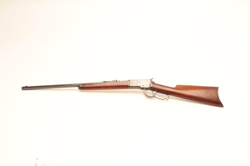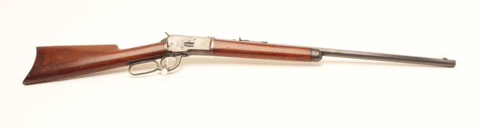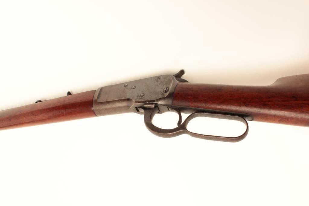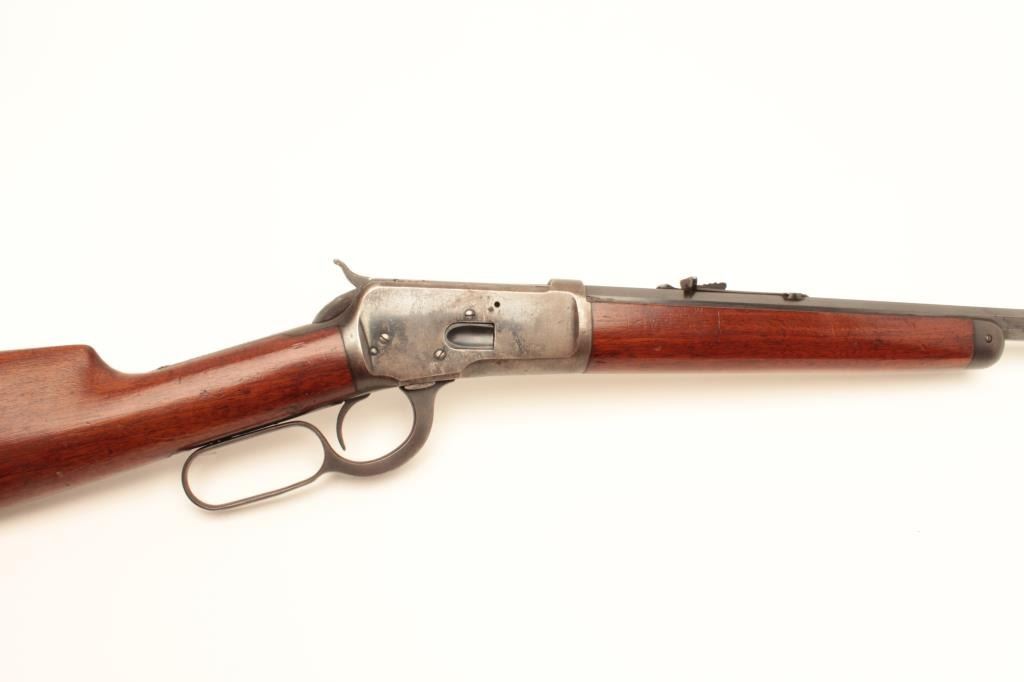 17FS-297 WIN 92 .32-20 24" OCT. #841168Winchester Model 1892 lever action rifle, .32 W.C.F. caliber, half magazine, 24” octagon barrel, blued finish, wood stocks, S/N 841168, in overall very good to near fine condition showing the majority ofits original finish on barrel and considerable original finish on receiver with some flaking of that finish, near fine bore, crisp action and markings, very good wood stocks. (C&R/No PPT). Est.: $1,200-$2,400.Winchester Model 1892 lever action rifle, .32 W.C.F. caliber, half magazine, 24” octagon barrel, blued finish, wood stocks, S/N 841168, in overall very good to near fine condition showing the majority ofits original finish on barrel and considerable original finish on receiver with some flaking of that finish, near fine bore, crisp action and markings, very good wood stocks. (C&R/No PPT). Est.: $1,200-$2,400.