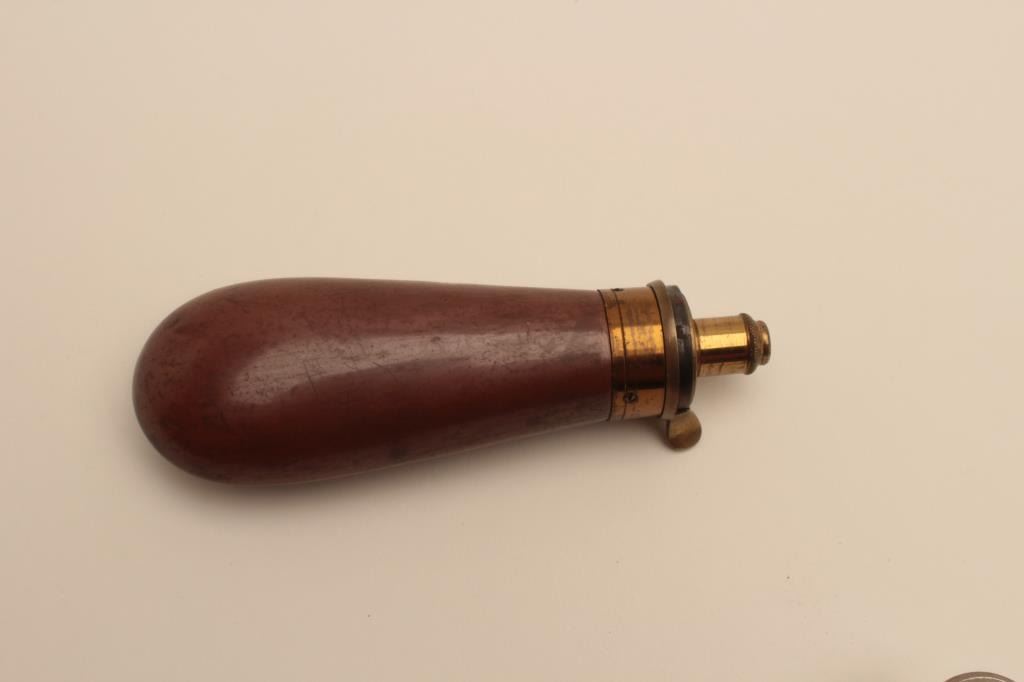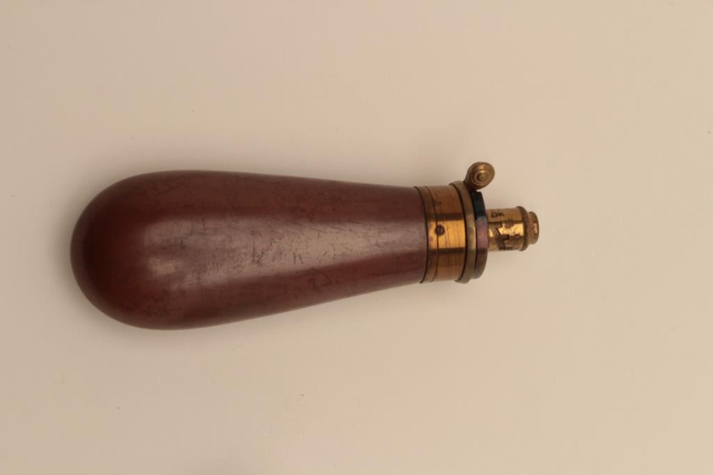 18AN-20 BAG FLASKBag flask by Hawksley with 3 stage charger and oiler of the same 1850-60 period. Goes with Tranters and London Colts. Est.: $200-$400Bag flask by Hawksley with 3 stage charger and oiler of the same 1850-60 period. Goes with Tranters and London Colts. Est.: $200-$400