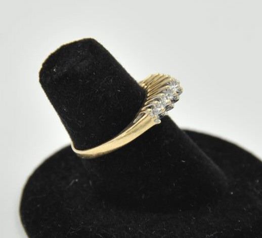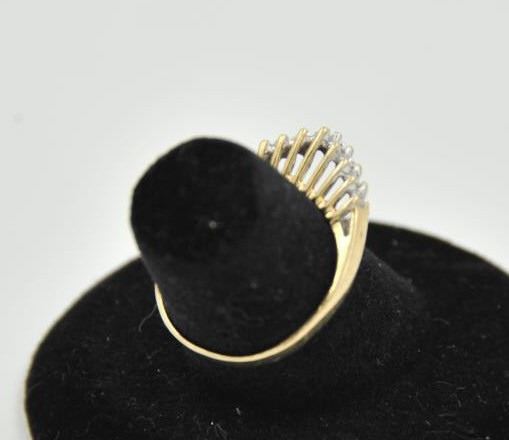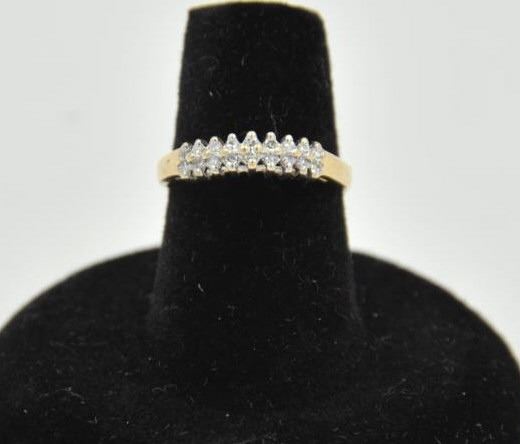 Lot 329 18RPS-30 DIAMOND RINGOne 14k diamond pyramid ring set with 18 diamonds weighing 0.15ct EST:$250-50