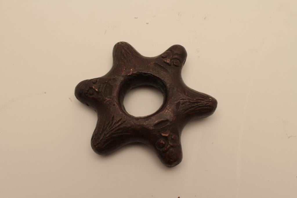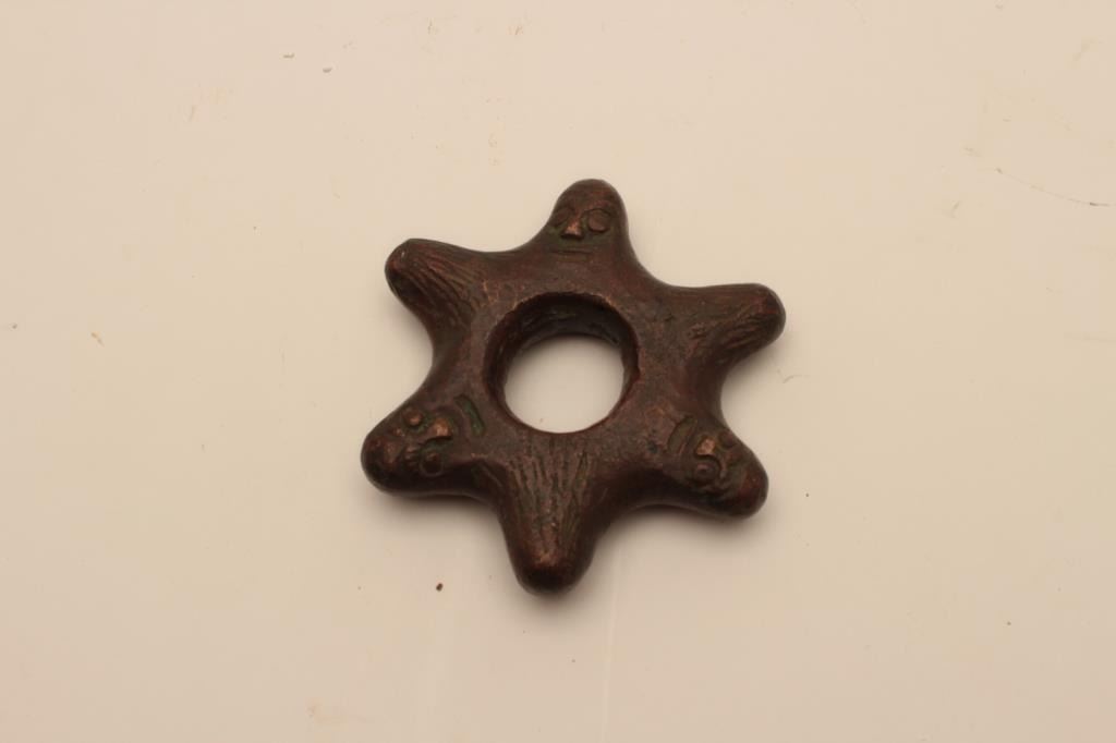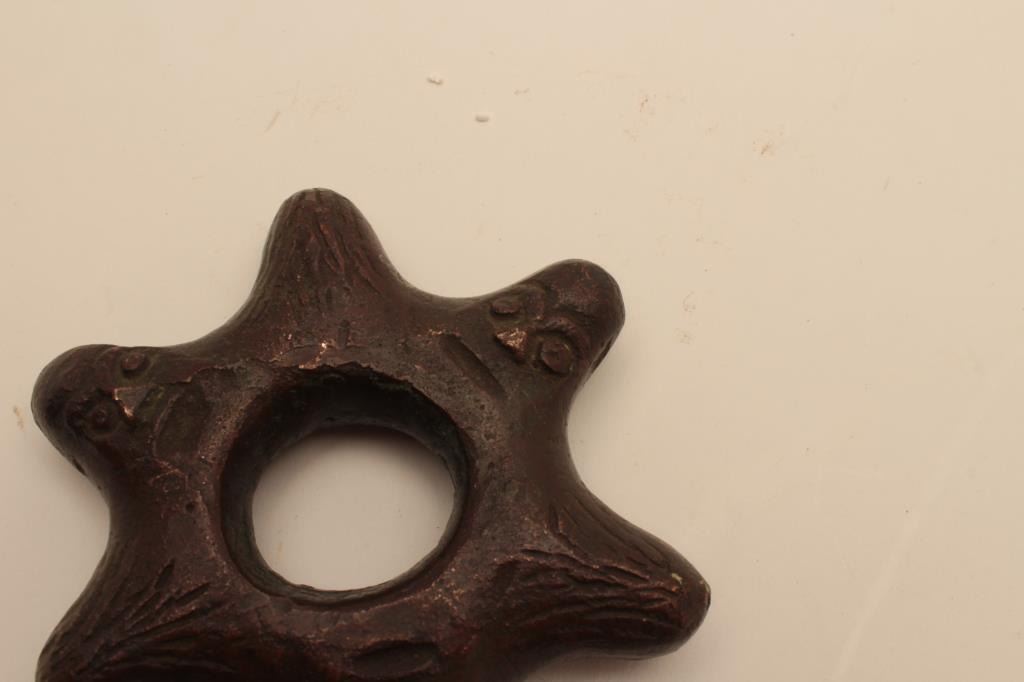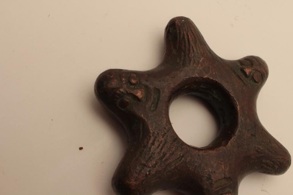 Lot 338 EVE-110 CAST BRONZE MACE HEADCast bronze mace head with raised faces. 300-500 years old. Eastern Eu